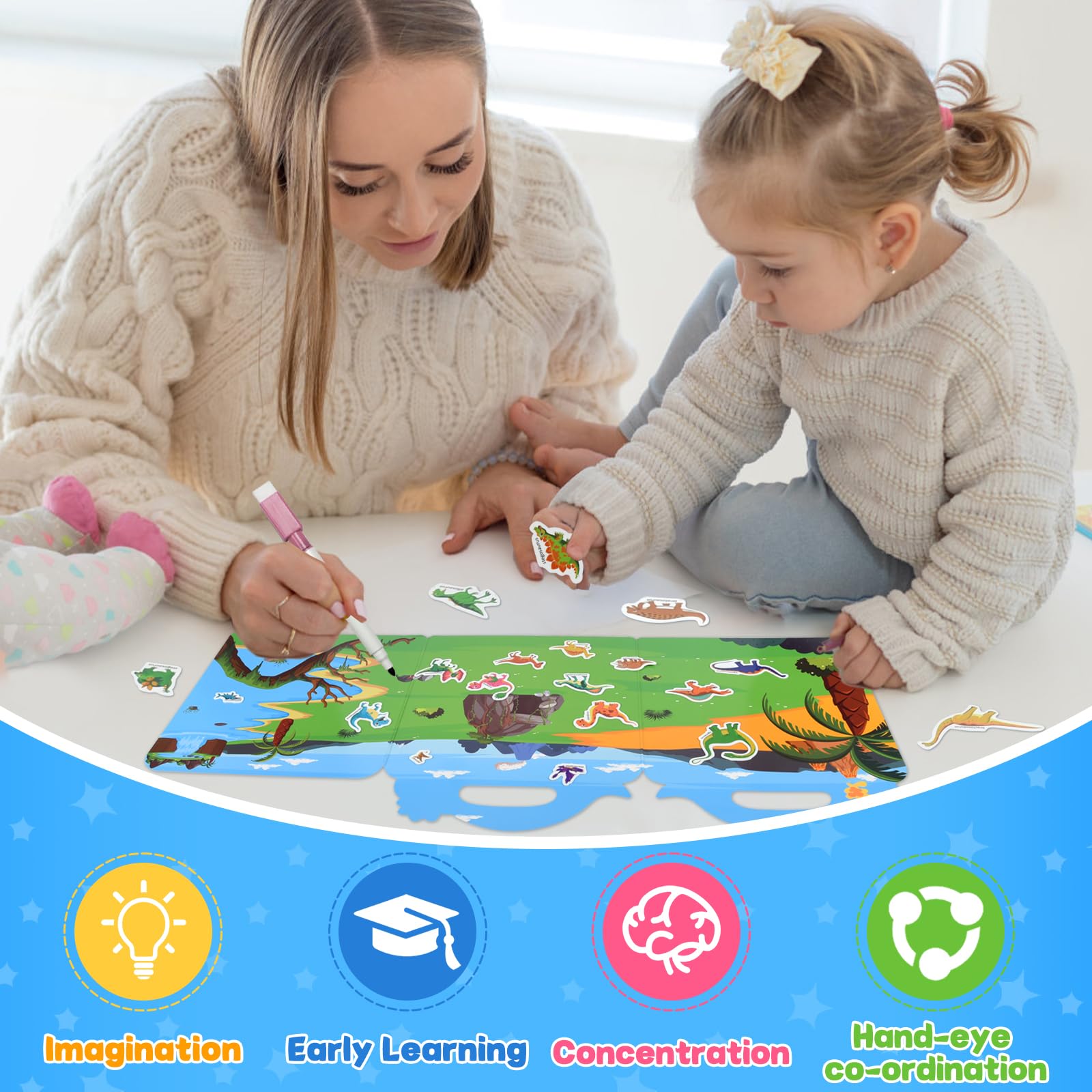- 【Vehicles/Dinosaurs/Animals】 Puffy Sticker Game Perfect for children practicing fine finger movement, hand-eye coordination, creative expression and other abilities.