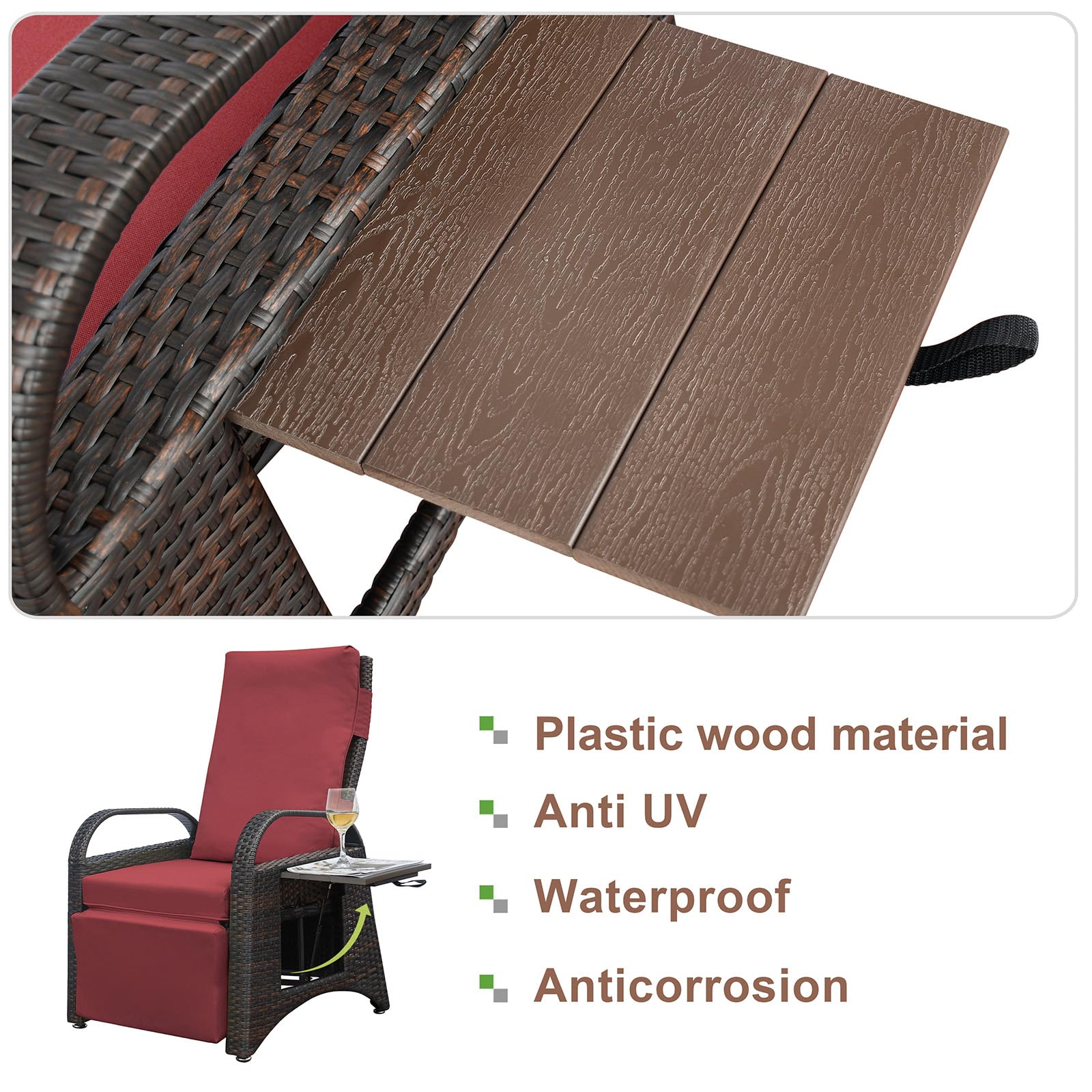 - Integrated Flip Table: The outdoor lounge chair has an innovative built-in flip table on one side, making it easy to place your cell phone, drinks, or snacks, adding functionality to your outdoor relaxation. It can also be tucked away when you are not using it