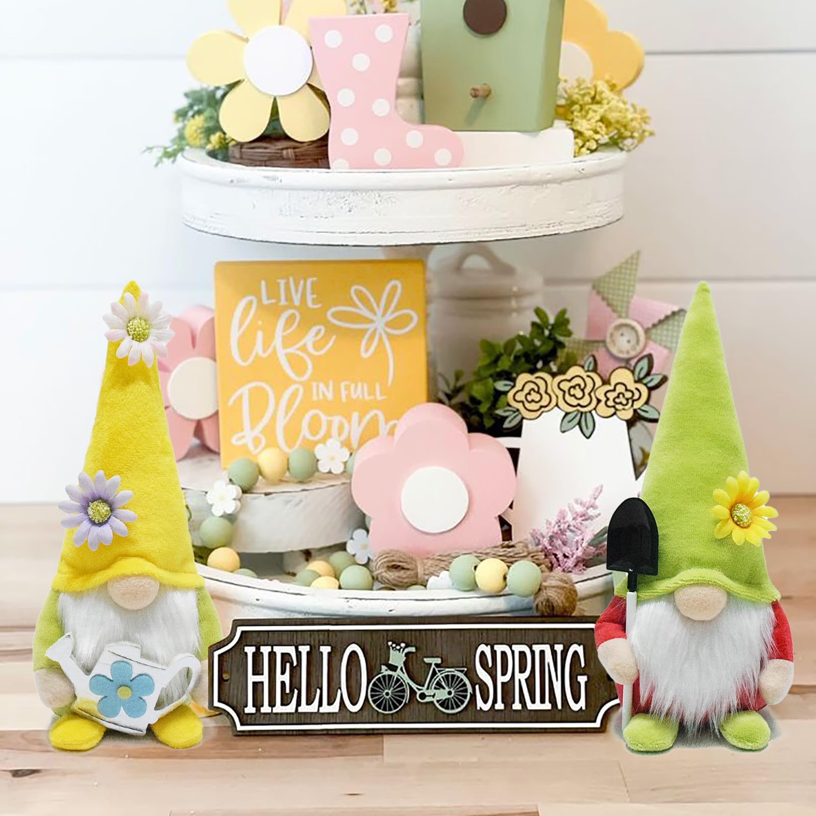 Attiigny Spring Flower Gnome Plush, Set of 3 Flower Spring Summer Gnomes Holiday Ornaments, Handmade Shelf Tiered Tray Decorations Gifts Santa Dolls for Home