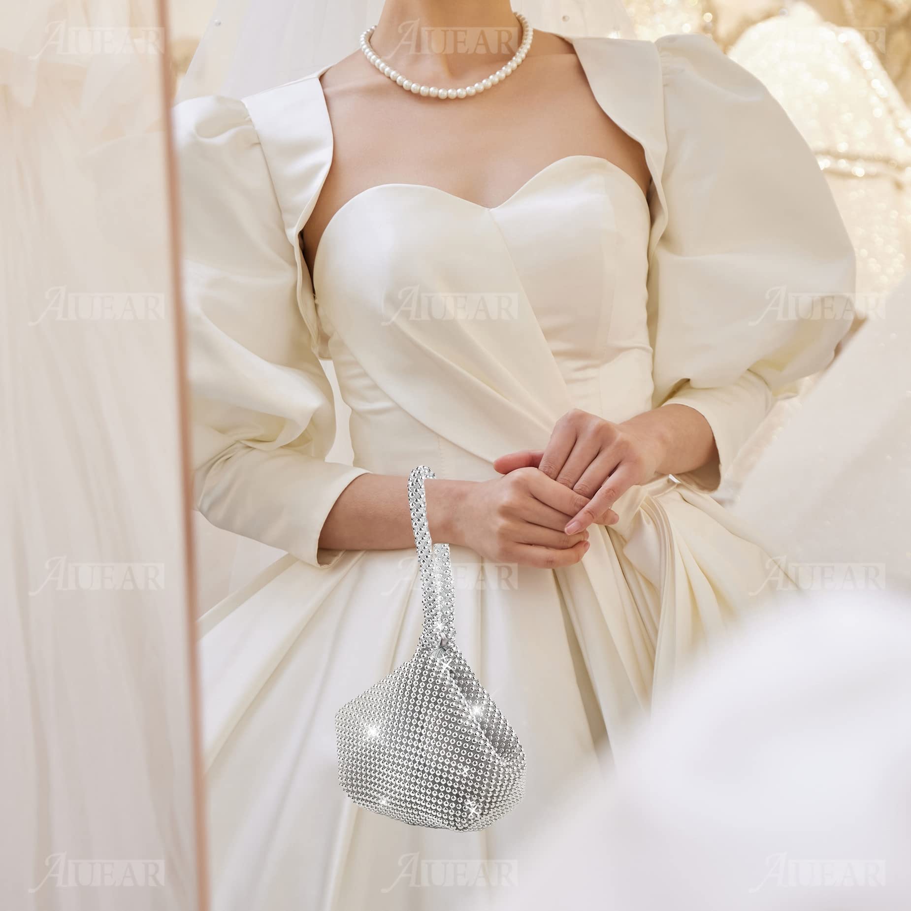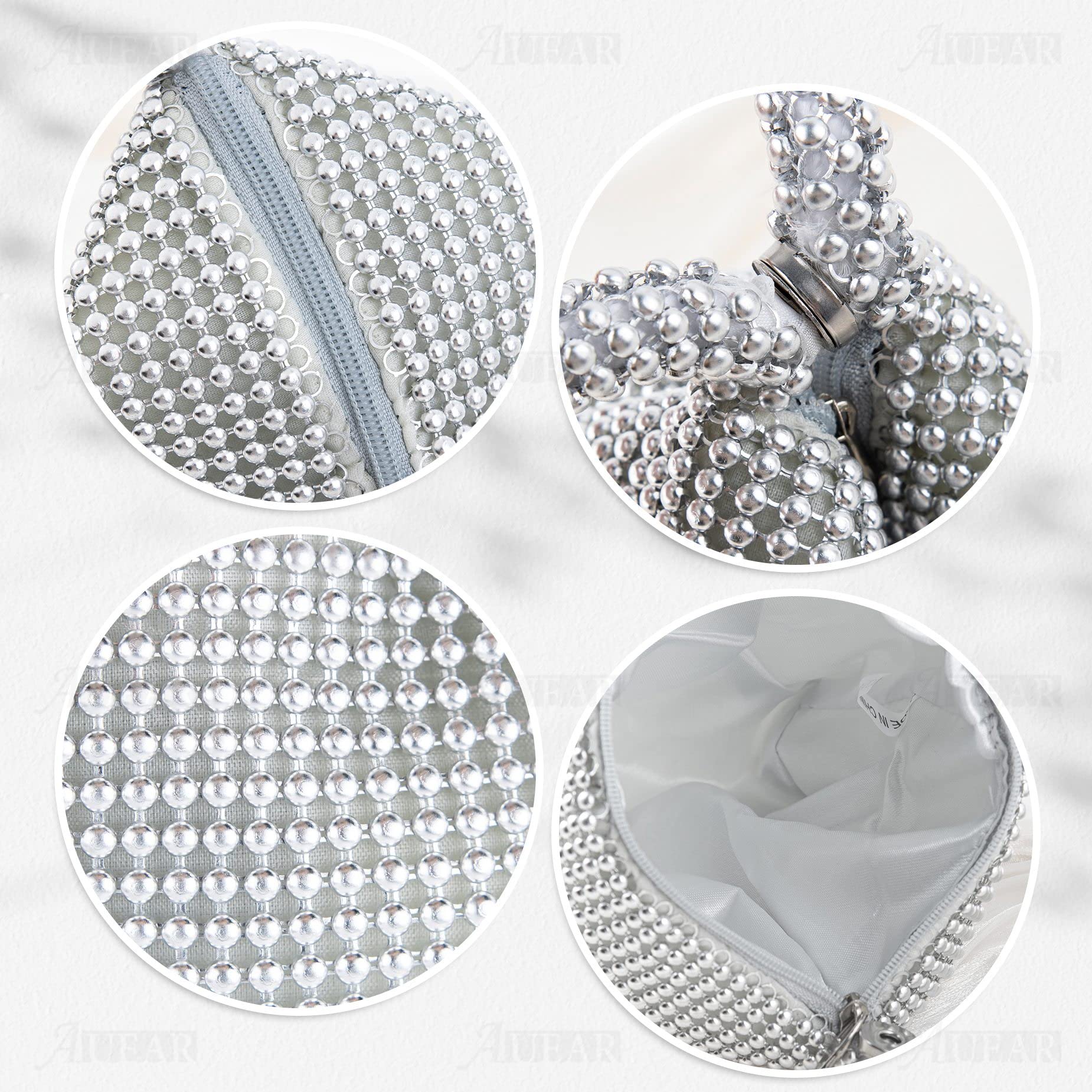 AUEAR, Triangle Bling Zipper Pouch Mini Size Women's Evening Clutch Bag Luxury Full Purse Sparkly Handbag for Prom Cocktail Party Wedding Engagement Silver