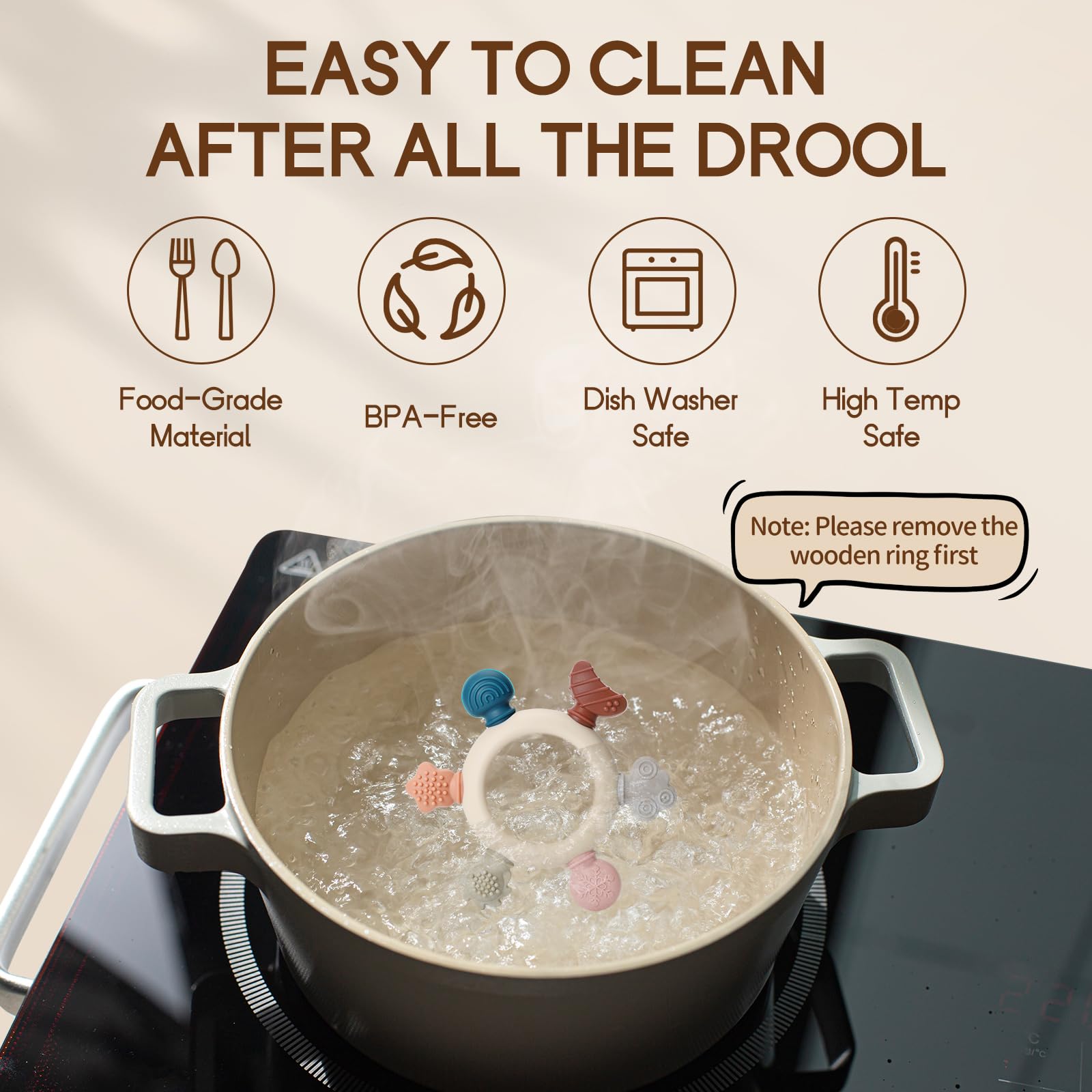 - Easy to Clean: Simply wipe clean or rinse the teething ring, the wood ring is removable, for easy thorough cleaning. Please note, avoid soaking wooden ring in water for extended periods.