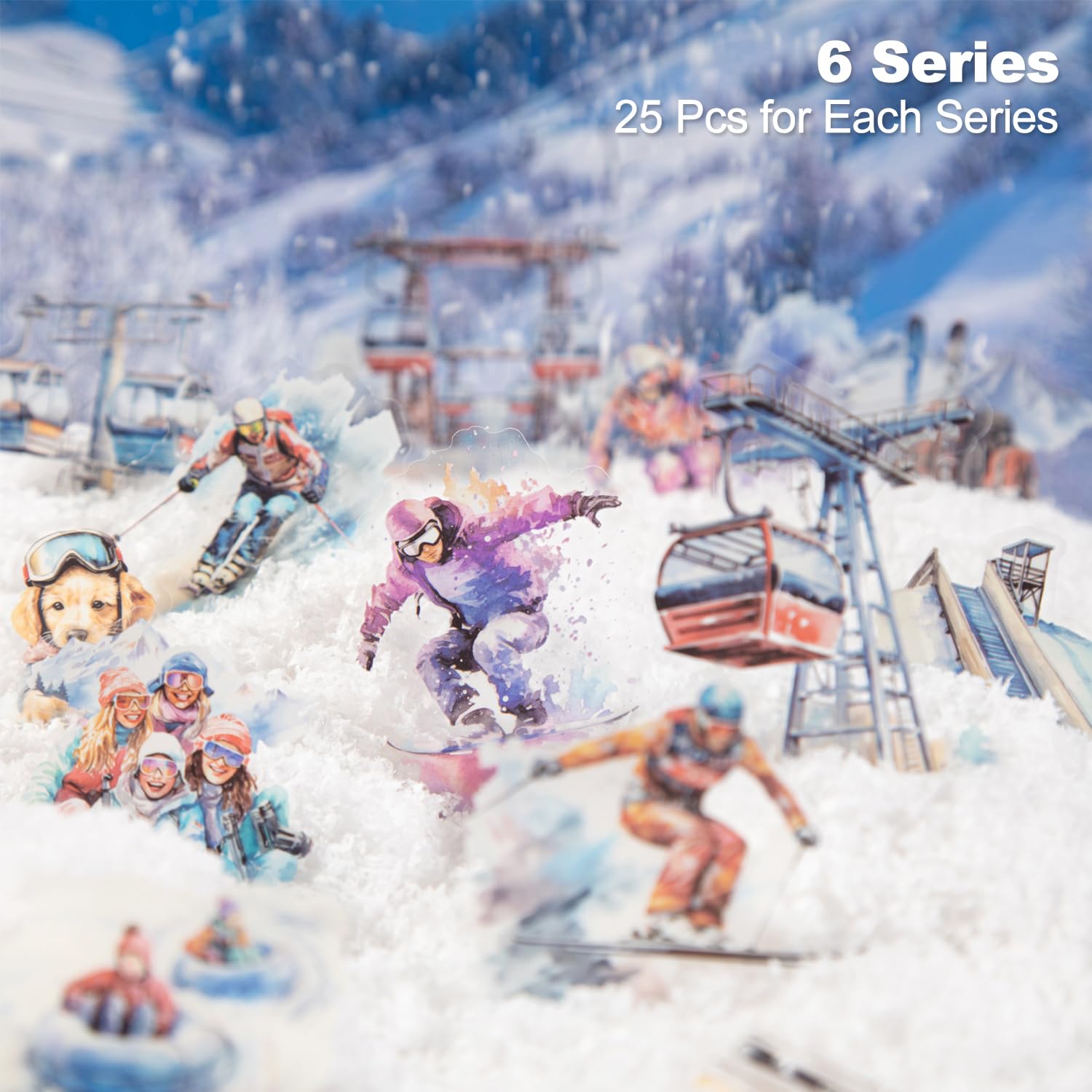 AuriicLeaf Snow Scene PET Stickers Set, 150PCS Winter Stickers for Scrapbooking, Journaling, DIY Crafts, and Art Supplies