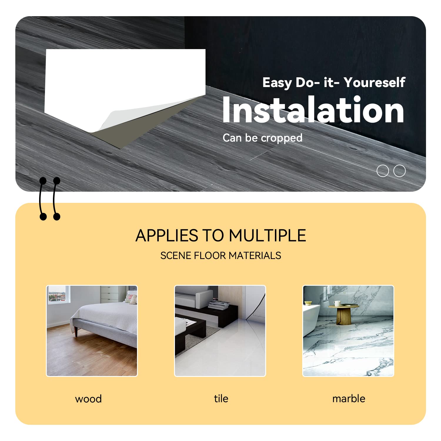 - Effortless Installation: Just peel and stick – no special tools required. Transform your space with ease and no mess. Our peel and stick floor tiles redefine simplicity