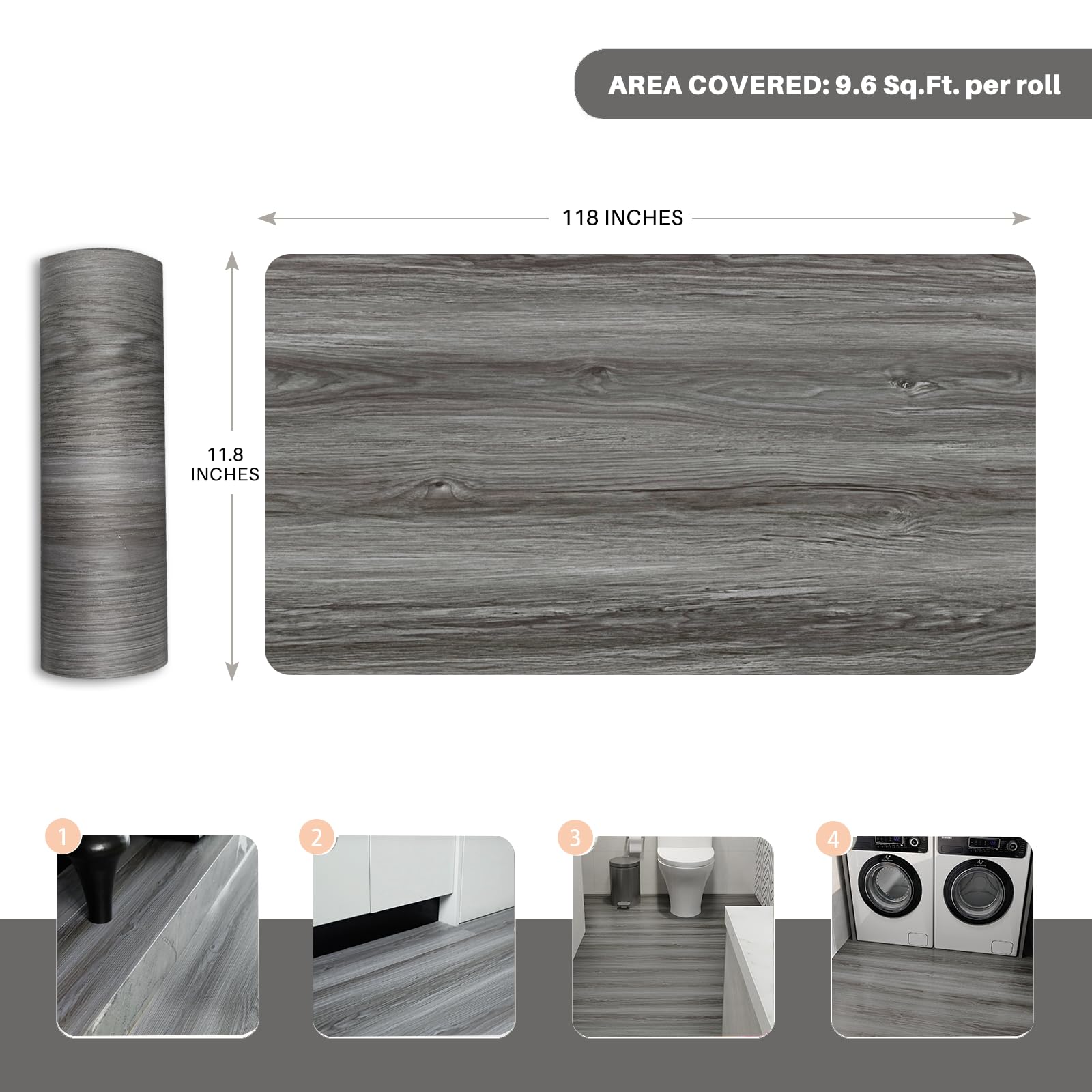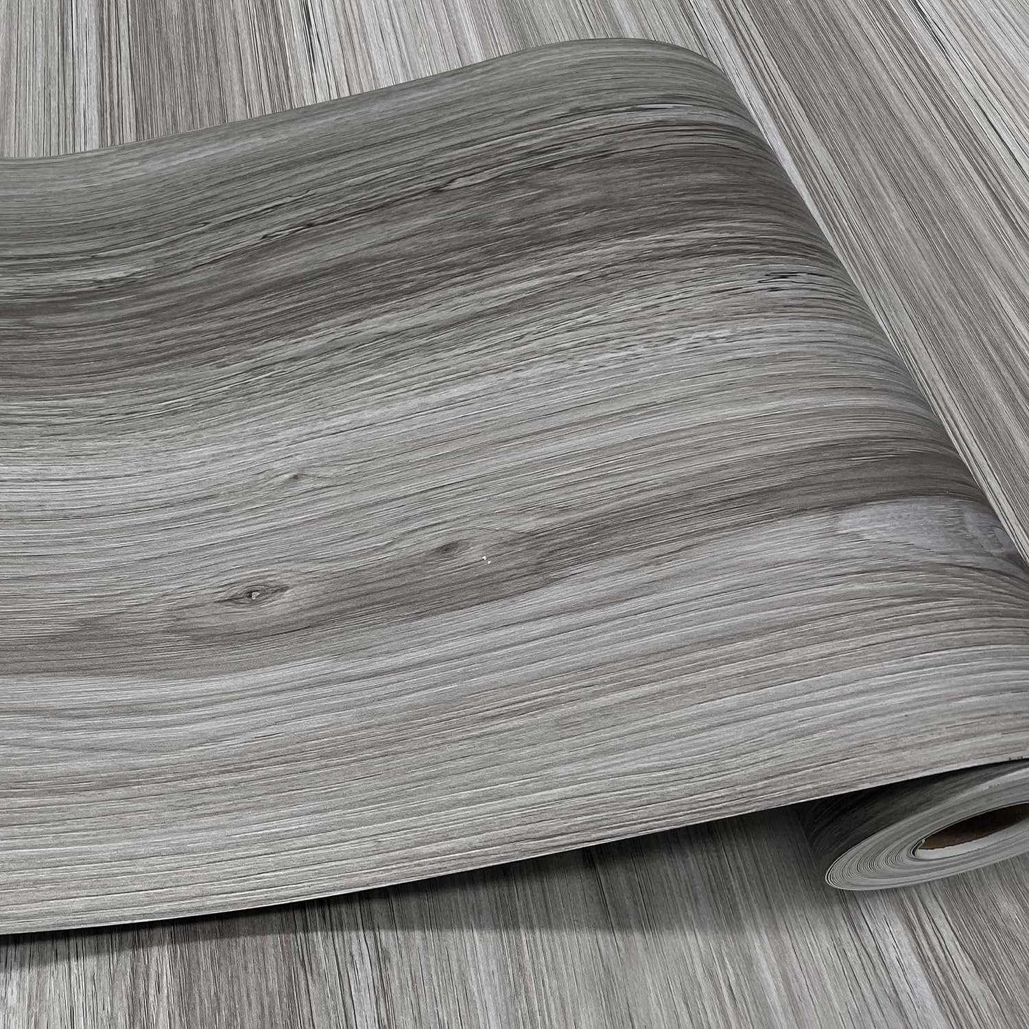 auxua Wood Grain Peel and Stick Floor Tiles – 11.8” Width, Full Roll Length of 118" – Versatile Design for Any Space, Grey Self Adhesive Vinyl Flooring, Waterproof and Non-Slip Features