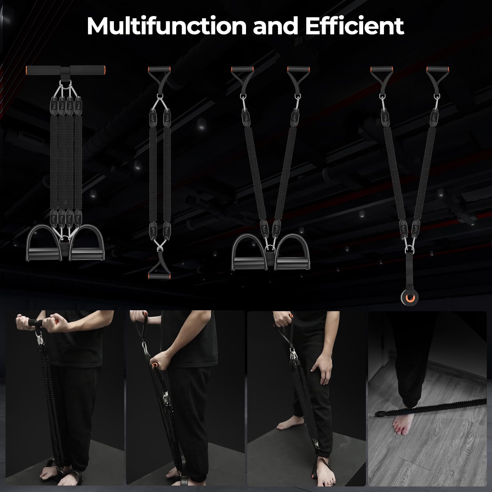- ✅Easy to Carry - You can use our multifunction fitness pedal puller resistance band to exercise anywhere and anytime. This set is small, lightweight. Whether you're at home, at the gym, or on the go, you can continue to exercise and stay in shape. Its versatility allows you to use it in various workout scenarios, such as yoga, Pilates, stretching, strength training, and power weight programs. They're the perfect home workout equipment.