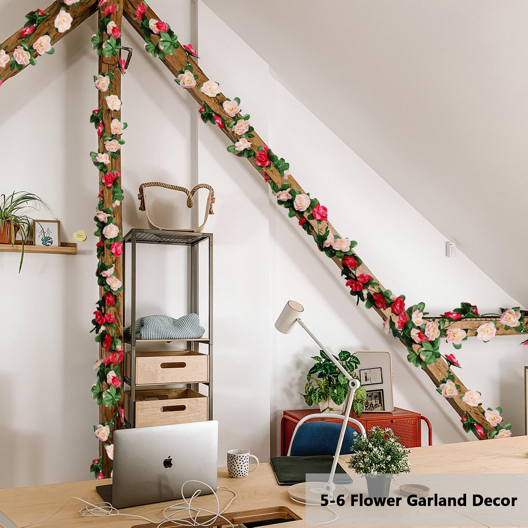 - Flower Garland Decorations] Pink Rose flower garland can be decorated on the bed, table, background wall, and photo wall in the bedroom outdoors for wedding decorations, car interiors, fence decorations, swings, doors, gardens, stairs, and more.