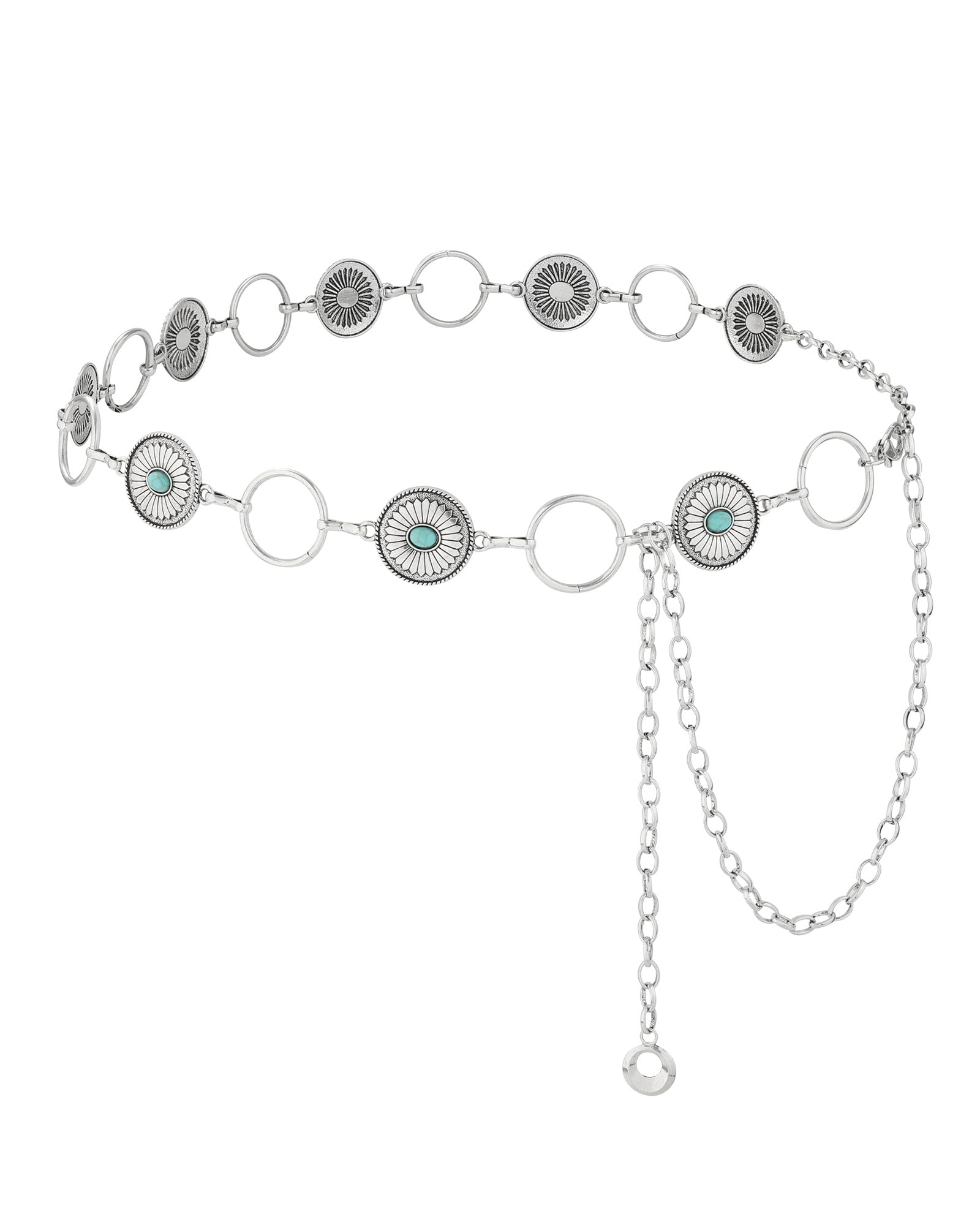 AWAYTR Western Turquoise Belt for Women - Cowgirl Concho Chain Belts for Jeans Dresses Country Concert Outfit