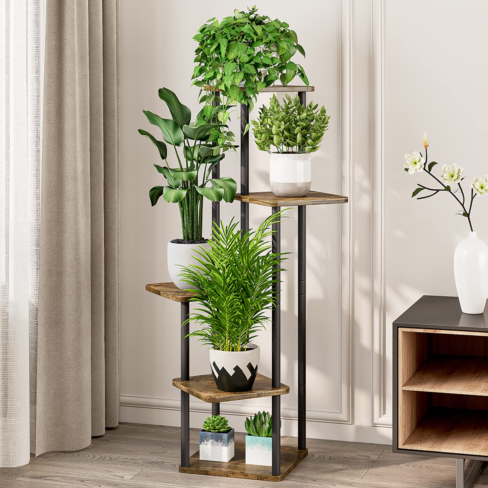 - 【Easy to Assemble】We have prepared clear installation videos, instructions and installation tools to make your assembly easier.The modern plant stand is suitable for placing in the corner to enhance its stability. Also recommended to place a heavier plant pot below and a lighter pot on the upper layer.