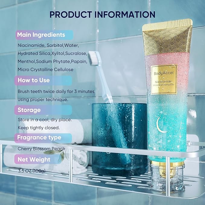 BodyAccel Niacinamide Toothpaste – Whitening & Fluoride-Free, Fresh Breath & Healthy Gums, Removes Surface Stains, Natural Peach Flavor (2 Pack)