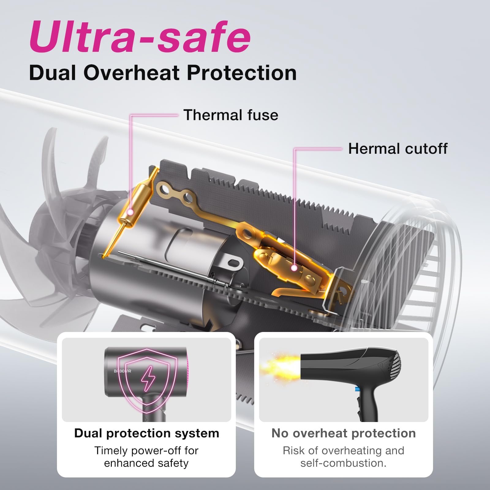 - [Ionic Technology] Transform your hair care routine with our ionic diffuser hair dryer. Blue light activation unleashes a surge of negative ions that fight frizz and static, leaving hair soft, smooth, and shiny. Faster drying and less heat damage mean healthier, salon-like results at home