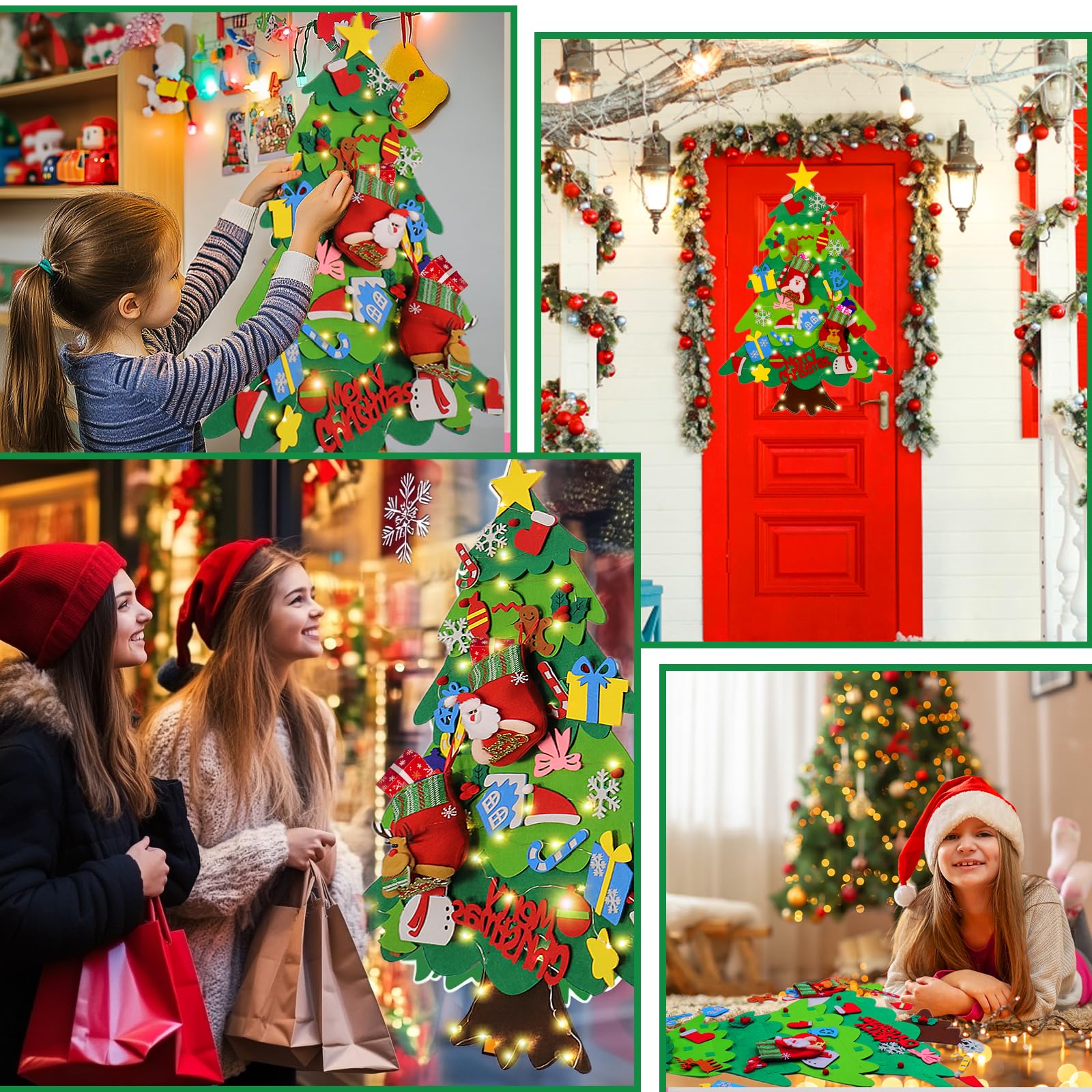 - NEW CHOICE FOR HOLIDAY DECORATION: This 3 feet tall DIY felt christmas tree kit comes with 32pcs detachable christmas ornaments(including snowman, snowflakes, christmas socks, christmas hats, candies, bells, etc.), 2pcs christmas stockings and 5 meters light strings, adding unlimited fun and festive atmosphere to your child's christmas