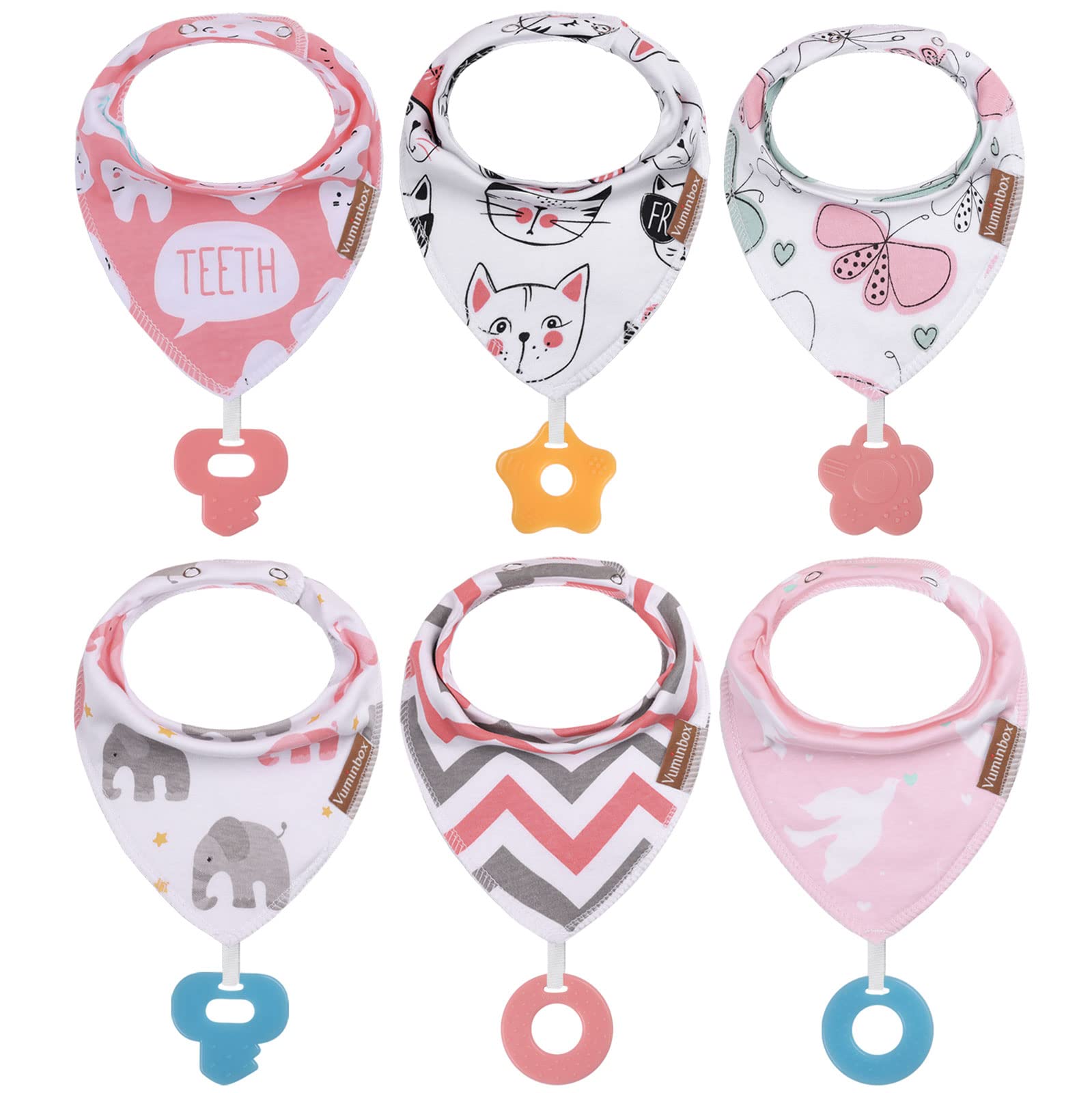 Baby Bandana Drool Bibs 6-Pack and Teething Toys 6-Pack Made with 100% Organic Cotton, Absorbent and Soft Unisex