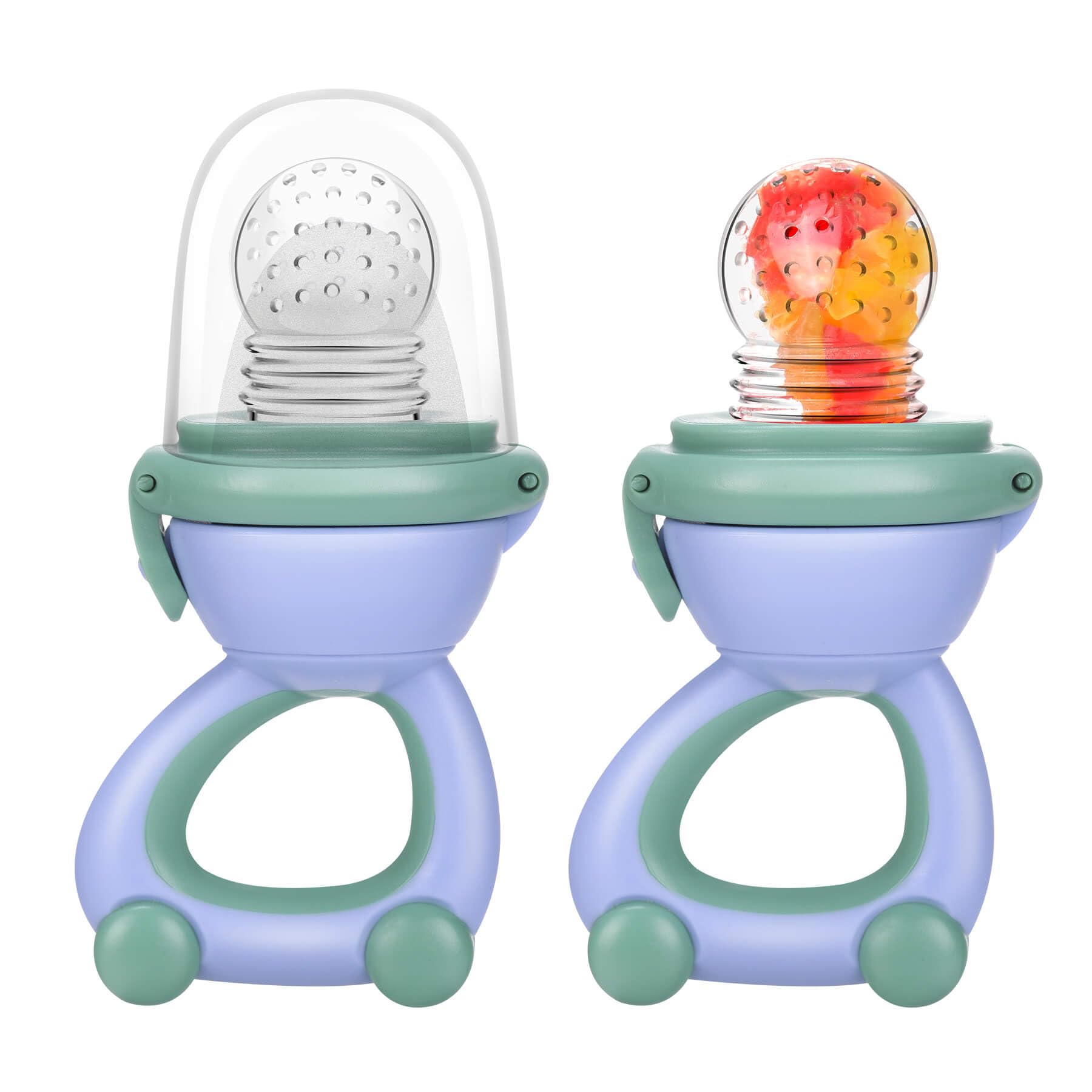 Baby Fruit Food Feeder Pacifier - Fresh Fruit Teething Toy 6M+, BPA Free Safely Introduce Solids Teething Relief Toy Includes Add Silicone Sacs, 2-Pack (Blue)