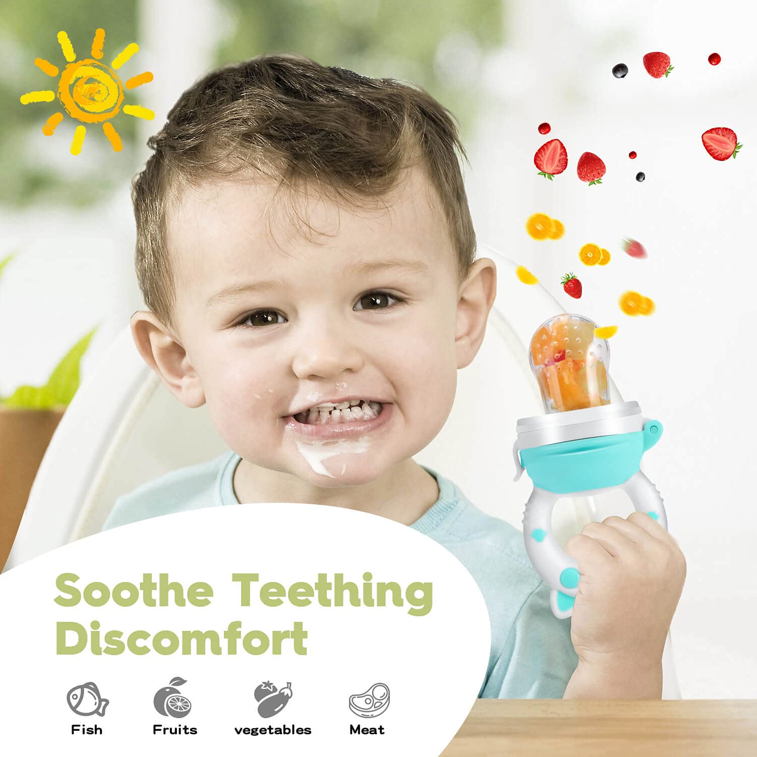 - UNIQUE DESIGN - This babies fruit suckers teether is easily introduce new foods to your baby without the risk of choking due to food pieces not being cut small enough and provide baby teething relief by easeing sore gums at the same time! It is a safe way to start introducing solid food as your child goes through the teething phase
