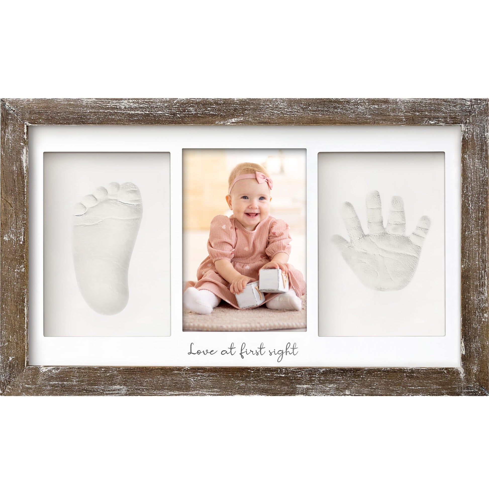 Baby Hand and Footprint Kit - Clay Handprint Keepsake Frame, Newborn Nursery Picture Frame, Personalized New Mom Gifts for Baby Shower & Registry (Alpine White)