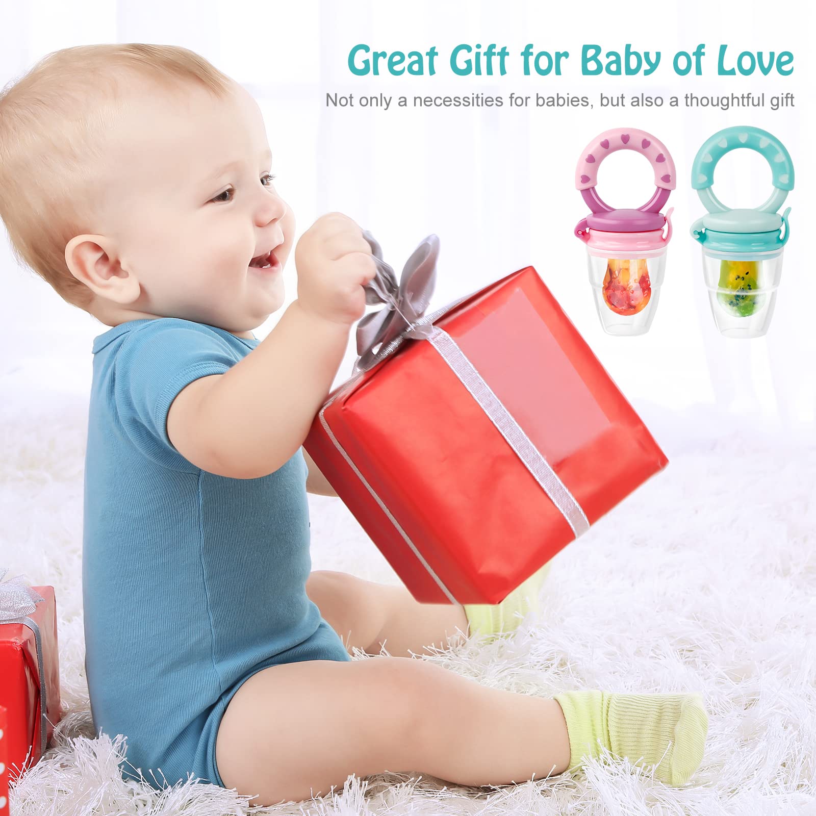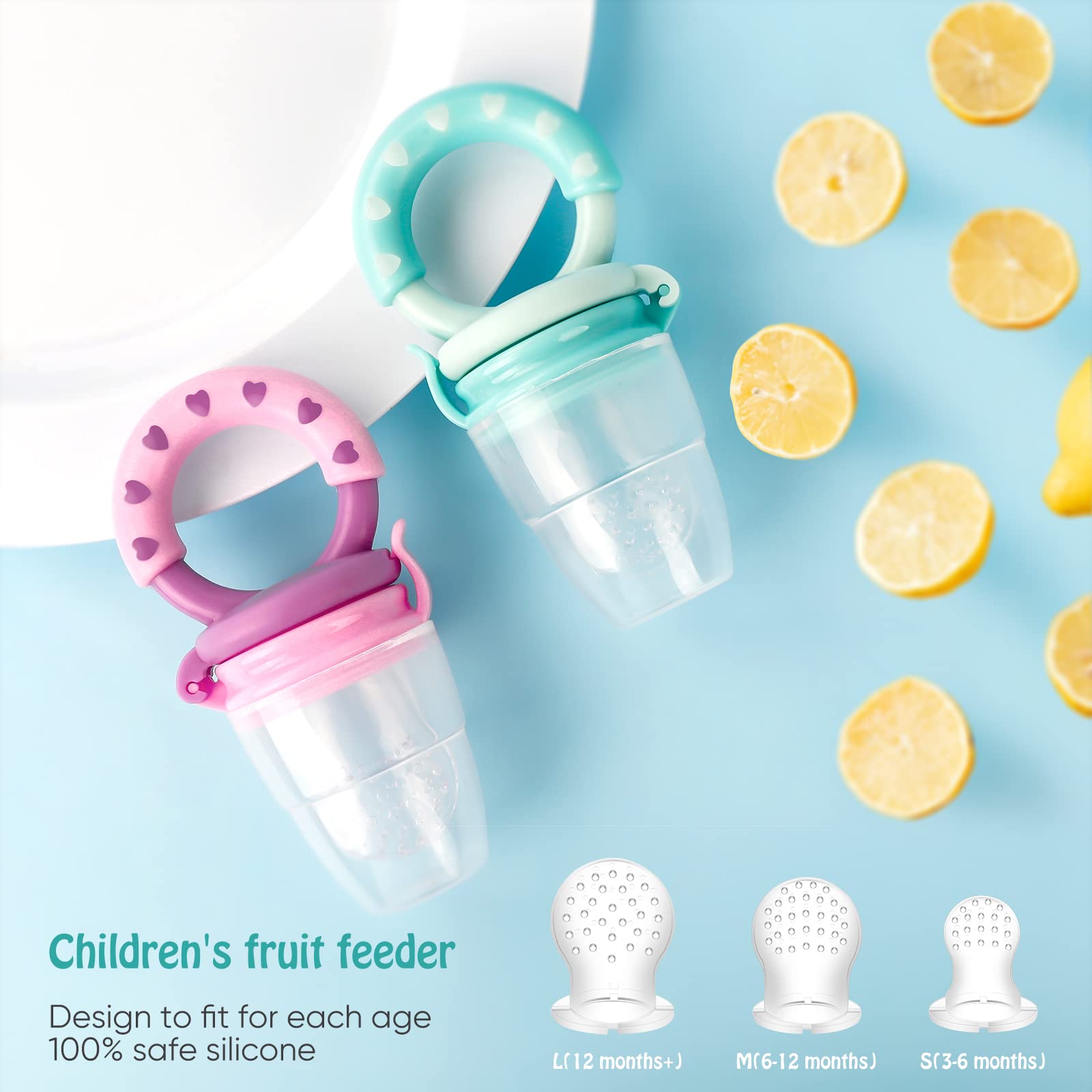 - 【TRY SOLID FOOD FLAVORS】HAOBAOBEI silicone feeder set including 2 pack baby silicone feeder with 4 silicone pouches, which is designed to fit for each age. Just put fresh fruits, food or frozen breastmilk, your baby will enjoy the taste of solid foods by chew the baby feeder.