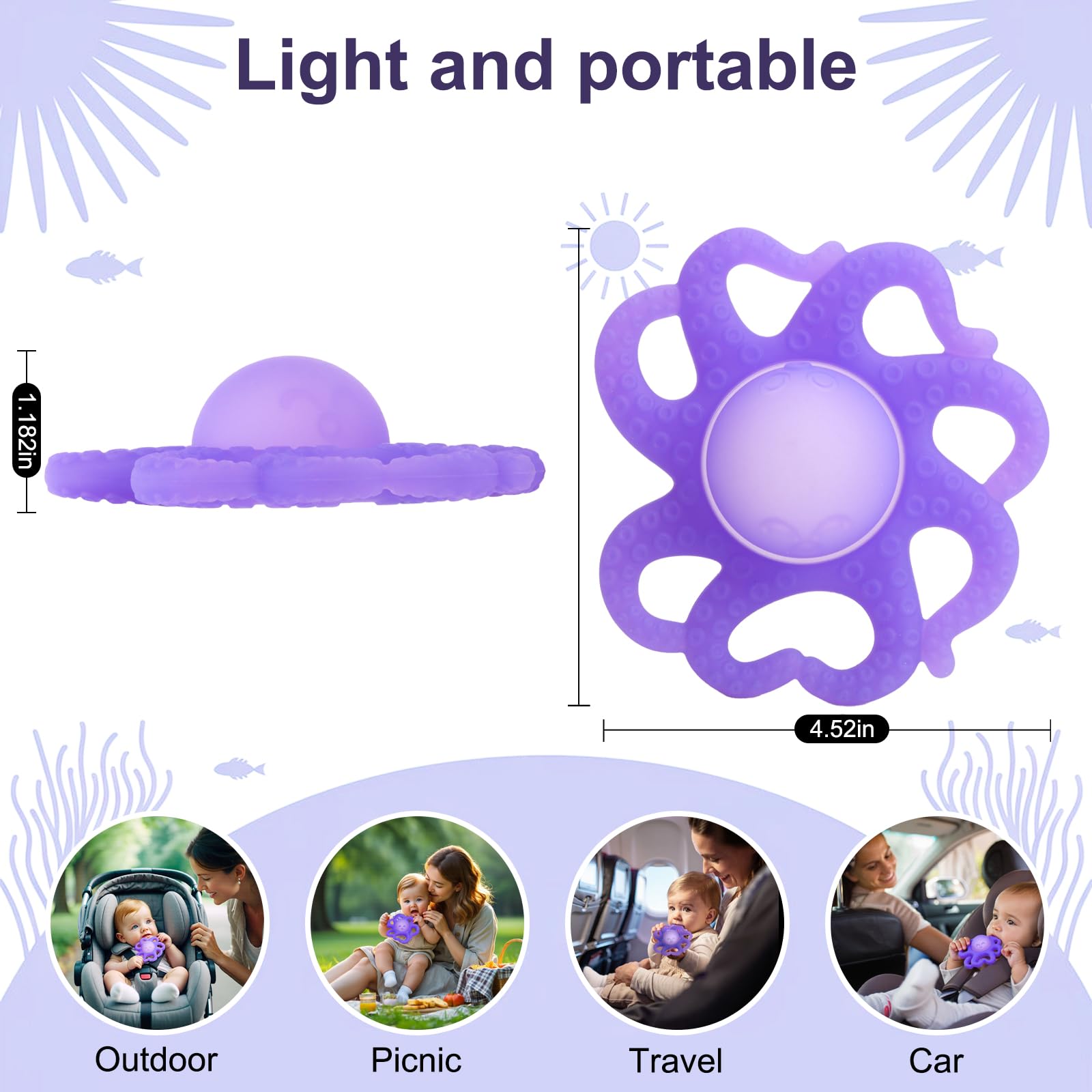 - 👶Easy for Baby Hands to Hold - Lightweight with ergonomic shape and easy-grip tentacles, promoting independent play. The lightweight baby teething toys are easy to carry, perfect for diaper bags or strollers, and ideal for travel, on-the-go, or everyday use at home.