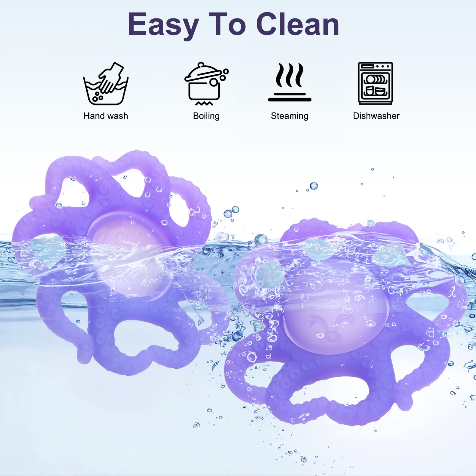 - 🐙Fun & Safe Sensory Exploration - Our baby teething toys are crafted from food grade silicone teethers, BPA Free, Toxin Free. CPSC certified laboratory tested. The vibrant purple octopus with textured tentacles stimulates tactile development while encouraging hand-eye coordination. BPA-free materials ensure non-toxic chewing.
