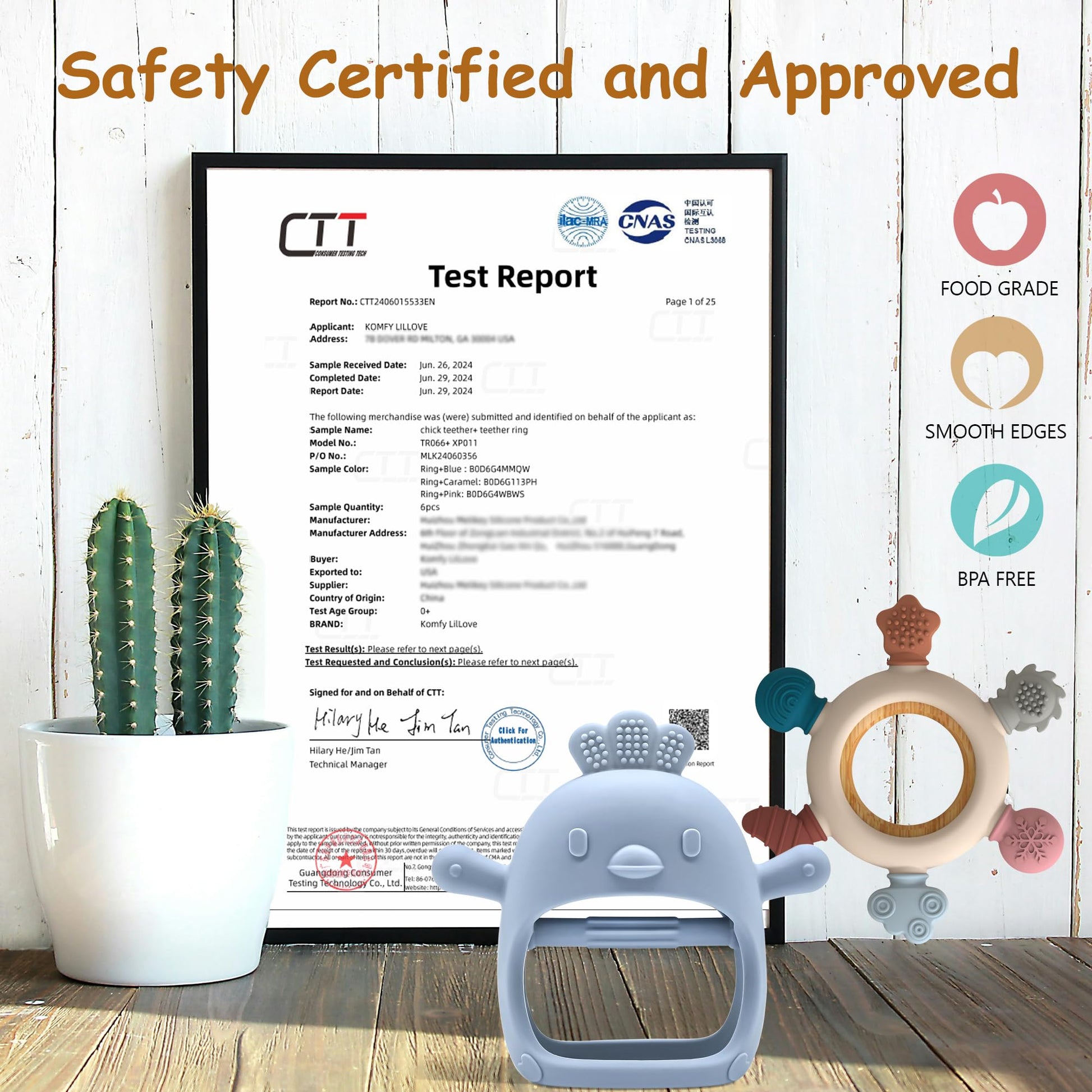 - Safe, One-Piece Design: Each silicone baby teether is made from food-grade, BPA-free material with a seamless, one-piece construction. No small parts or loose ends just a safe, durable design that gives parents peace of mind during every soothing session.
