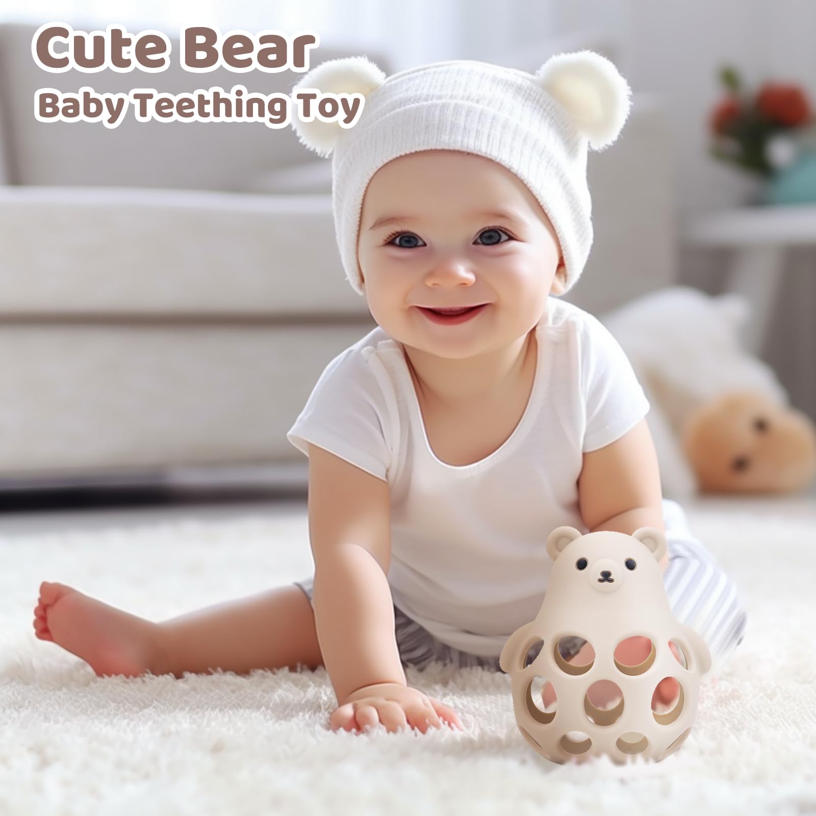 Baby Teething Toys Silicone Teethers - Babies Toys Chew Toys Food Grade Silicone for Sucking Needs, BPA Free for 0-6 6-12 Months(Pink White)
