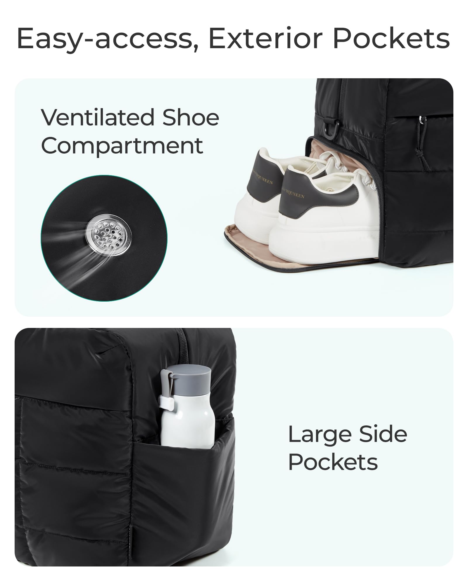 BAGSMART Gym Bag for Women, Carry on Travel Duffel Bag, Water-resistant Weekender with Shoe Compartment, Black