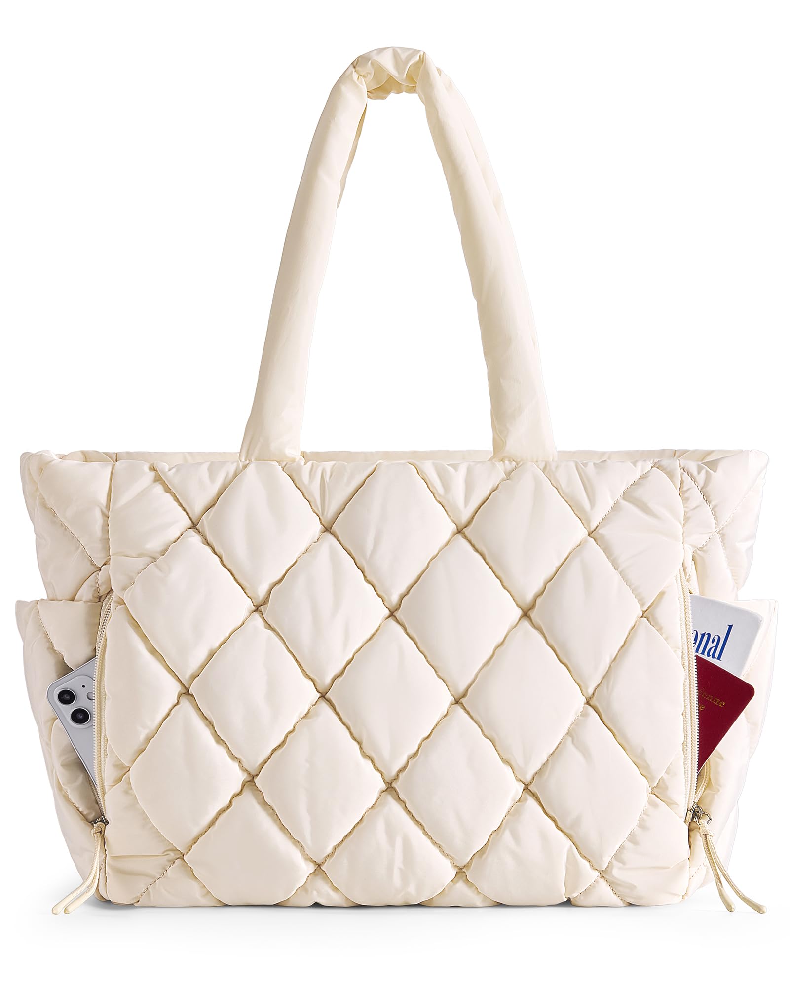 - PUFFER MATERIAL: Only 0.99 lbs. Stylish and cute, this puffy tote bag is made of lightweight and soft material that is durable and water resistant