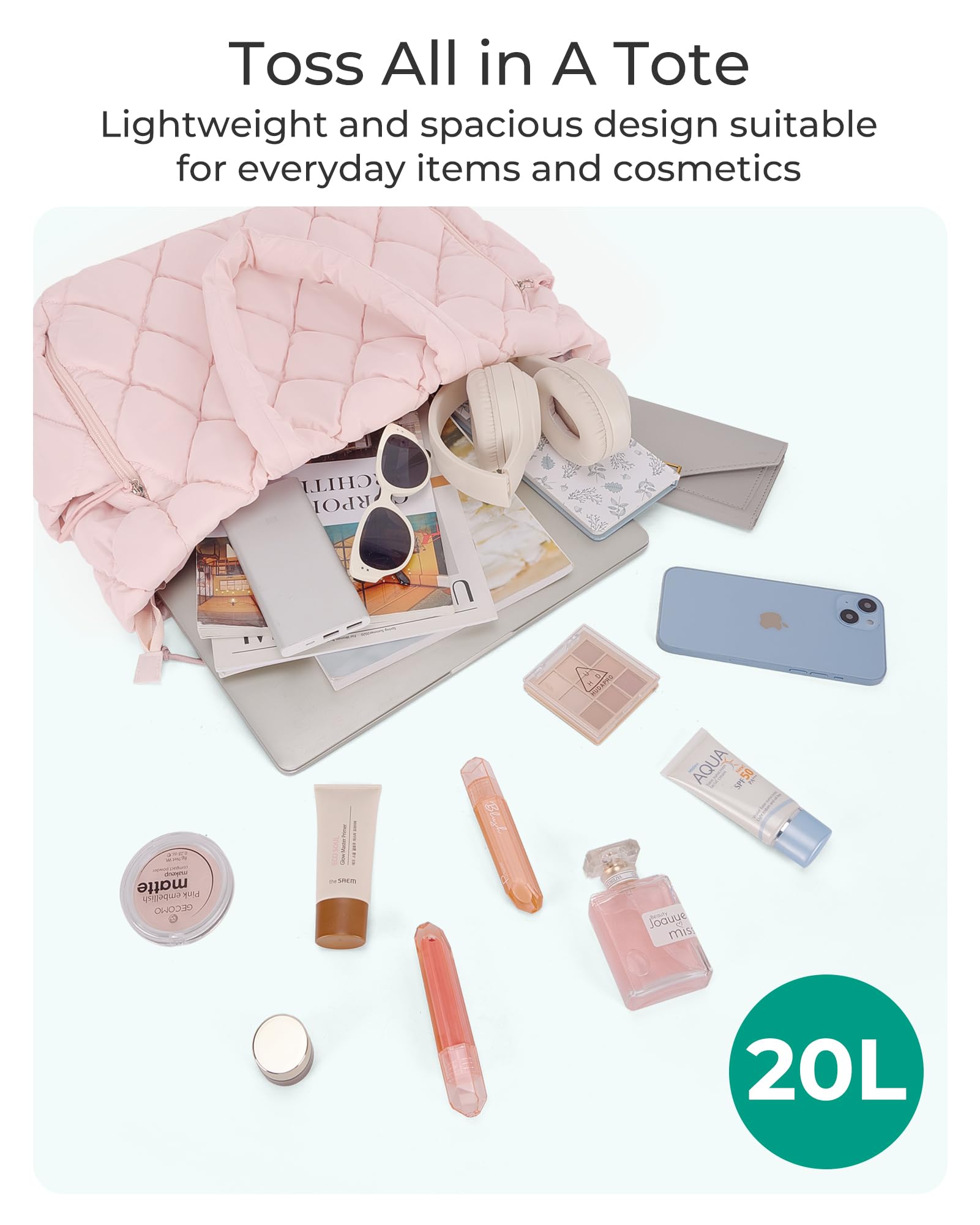BAGSMART Tote Bag for Women, Quilted Puffer Tote Bag with Compartments, Shoulder Handbag Work Bag with Zipper for Travel