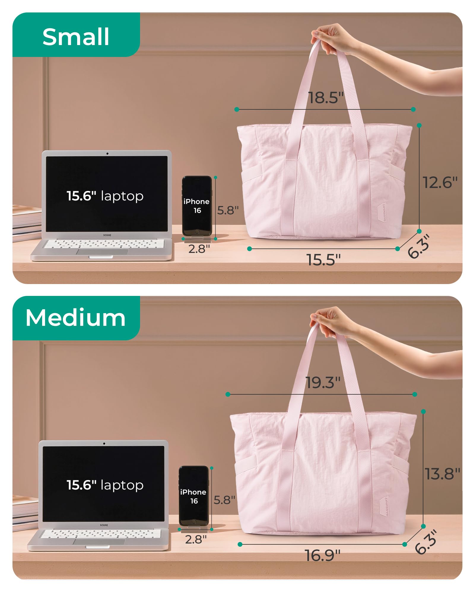 - Generously Sized: The purses for women measures 18.5' (top length) x 15.5' (bottom length) x 6.3' (width) x 12.6' (height). Fits a 15.6' laptop, books and all daily essentials with a 24L capacity. Perfect for Office commutes, gym sessions & yoga classes, Weekend trips & shopping sprees.