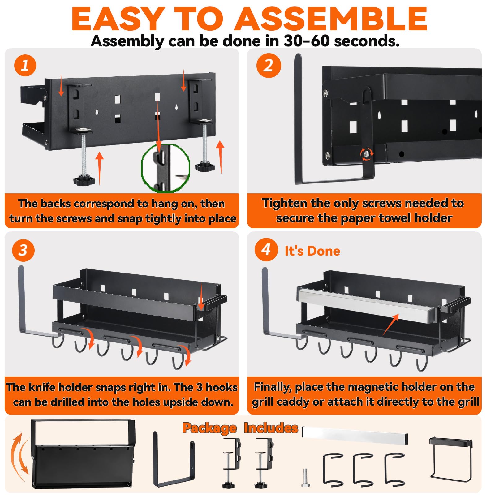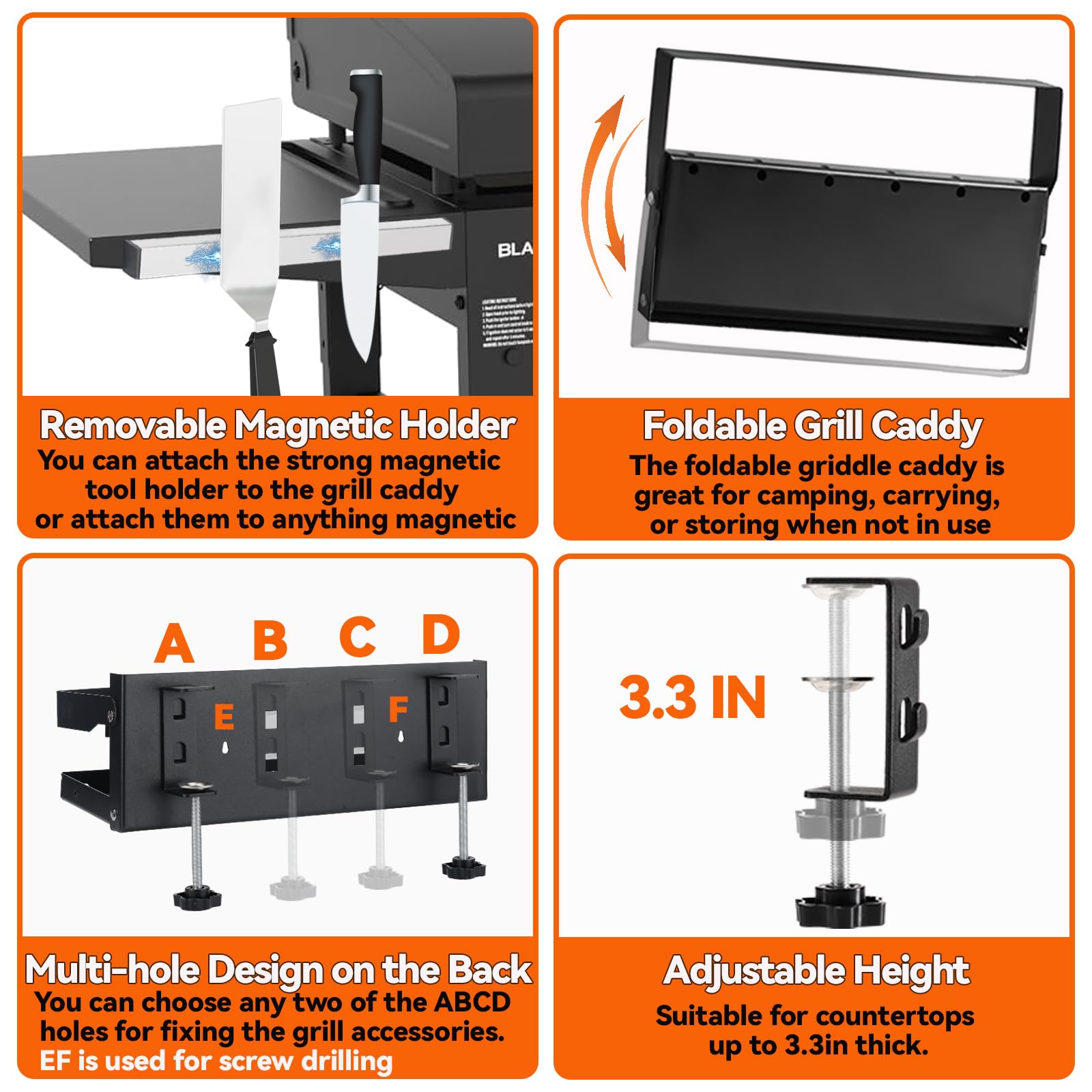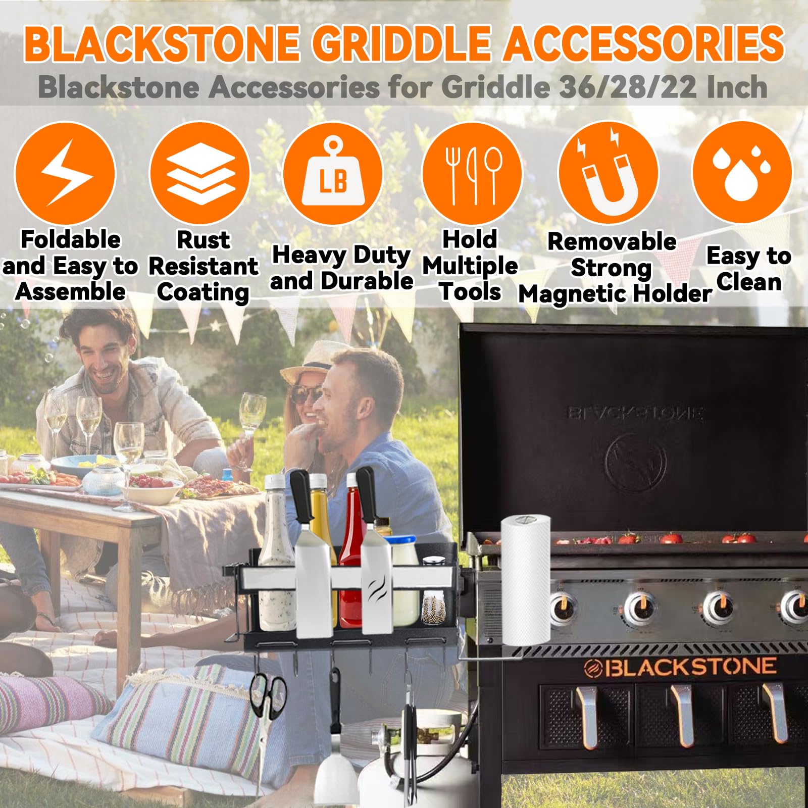 Bakbarbe Blackstone Griddle Caddy with Magnetic Tool Holder & Paper Towel Holder, Foldable Blackstone 22/28/36 Inch Griddle Accessories, Portable Space Saving Grill Caddy BBQ Accessories