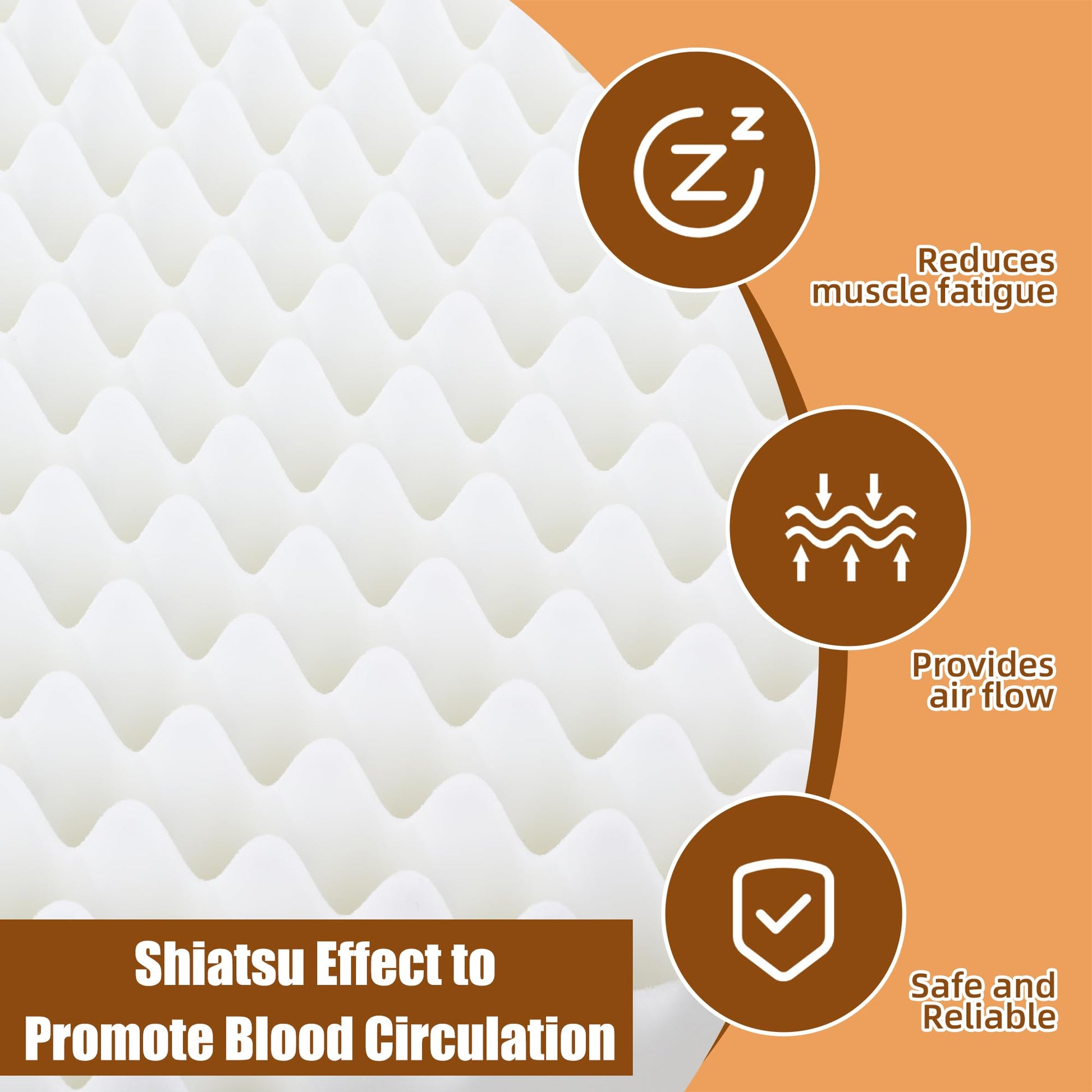 - 【Shiatsu Effect, Promote Circulation】: The cushion is made of high quality egg crate foam padding, which can help reduce or heal pressure sores by reducing the weight of sensitive areas and improving air circulation, relaxing muscle stiffness, reducing muscle fatigue, and providing you with unparalleled comfort