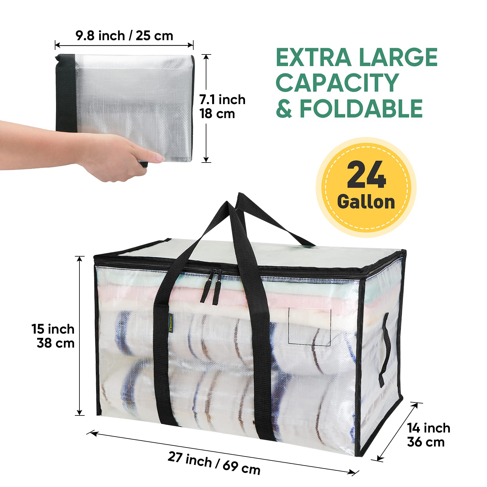 - [✔️HEAVY DUTY & OVERSIZED] The extra large storage bags are 27'' x 15'' x 14'' that provide a 24 Gallon storage volume. The load capacity of each storage bags is 50 lb. The carrying handles are designed to surround the plstic tote to hold heavier loading than stitched handles.