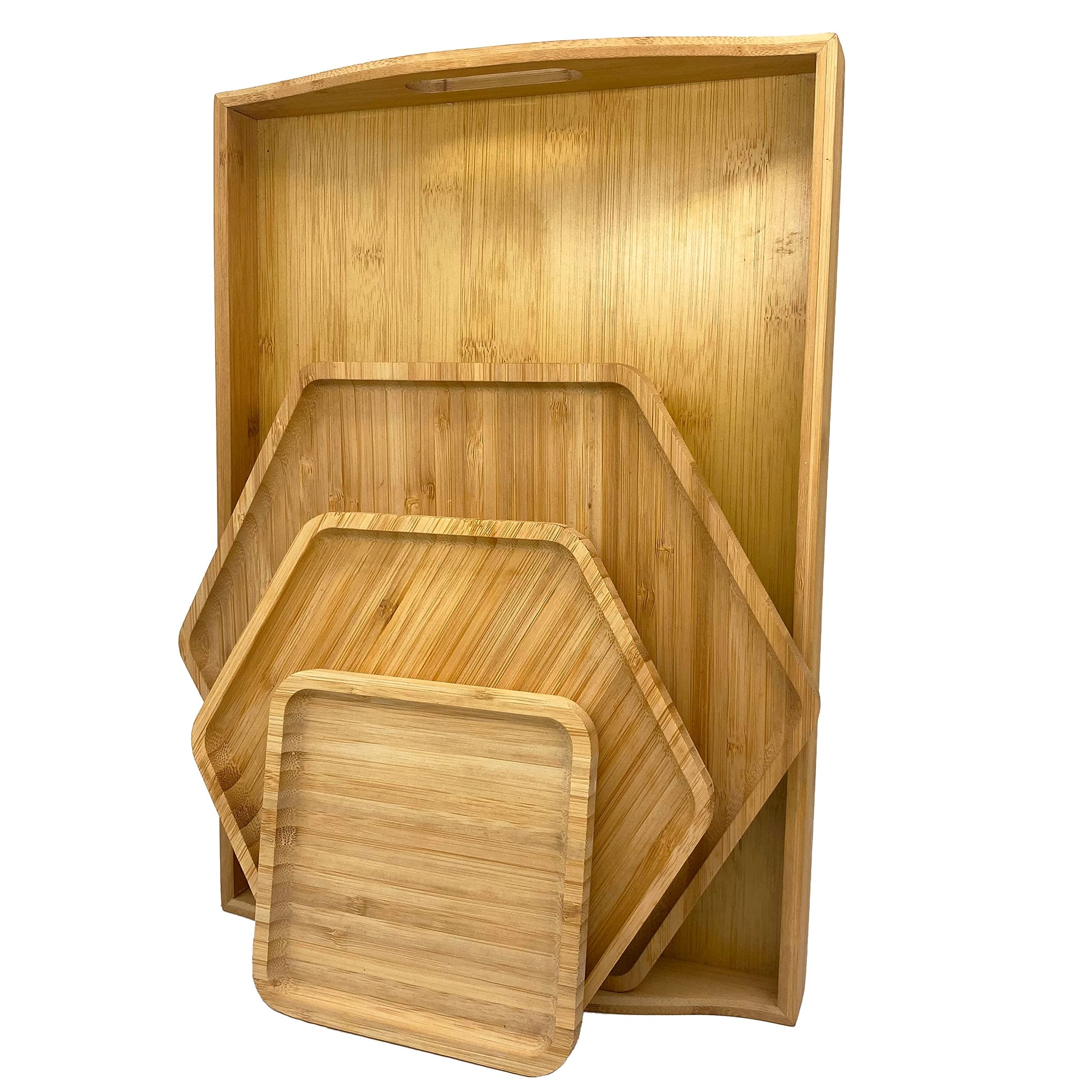 Bamboo Serving Trays Charcuterie Platter 16.5"x11.8"(42x30cm with Handle, Set Includes 1xHexagon 12.5"(32cm)+1xSquare 7.8"(20cm)+1xSquare 5.9"(15cm) Small Plates for Family Dinner