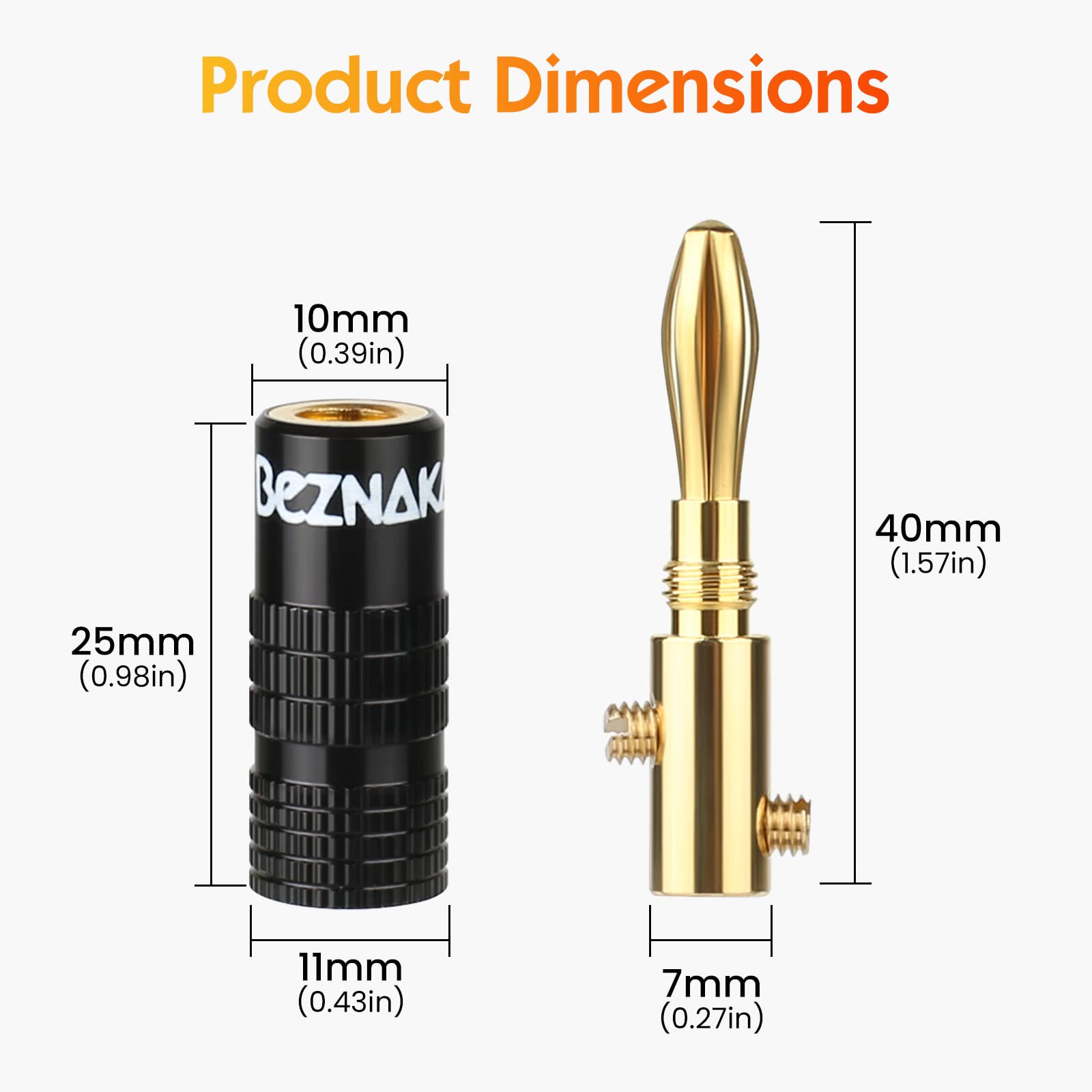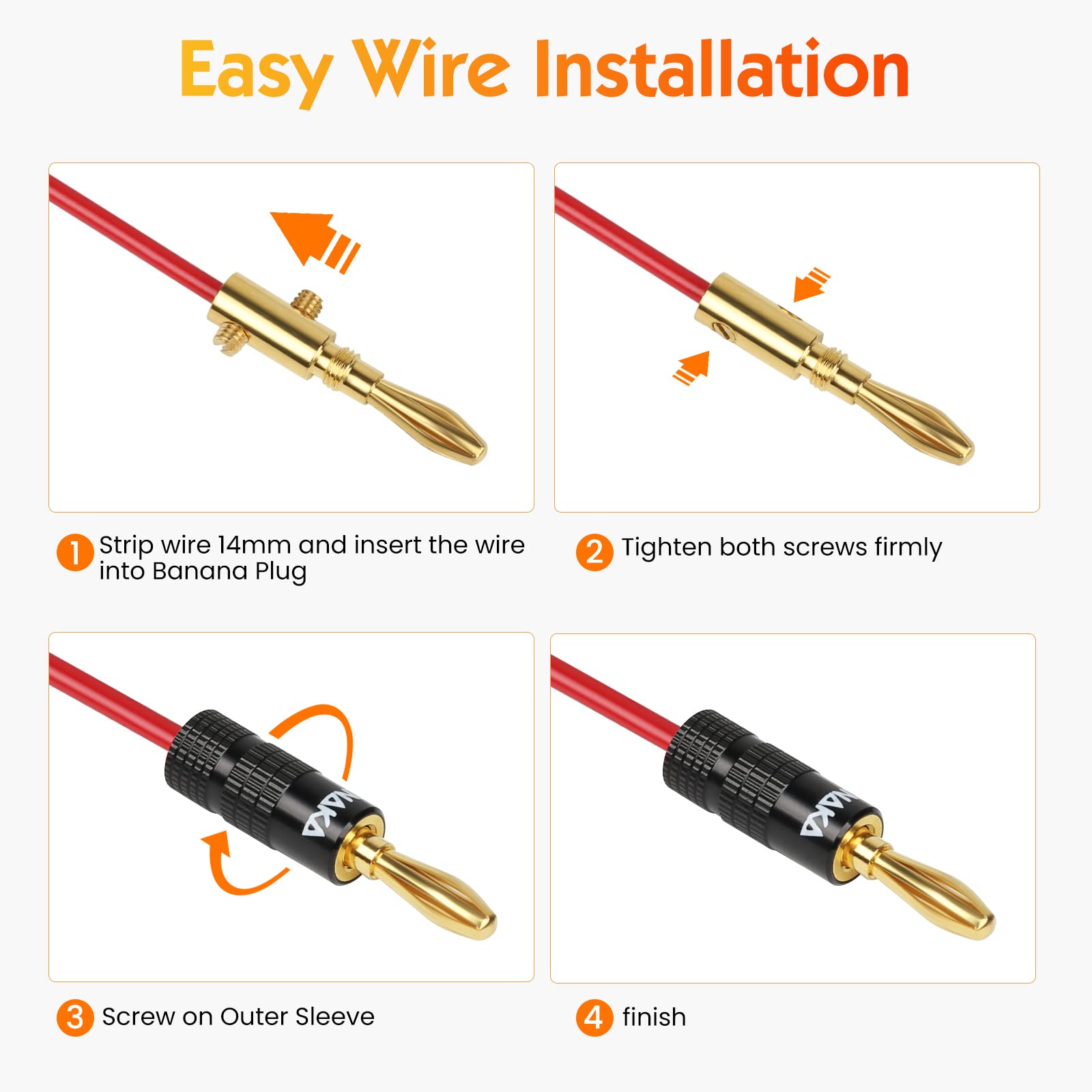 - Our banana plugs feature a closed type design with dual screws, making installation of speaker wires quick and convenient without requiring soldering. And with high-quality connectors, you can trust that your connections will stay tight and secure, without the risk of pulling out easily. Upgrade to our reliable and long-lasting banana plugs for the ultimate convenience and peace of mind