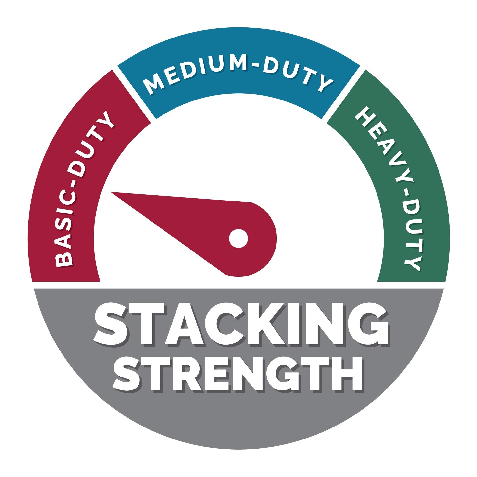 Basic-duty, standard set-up construction for moderate stacking or use with shelving Made in the USA Double wall, single wall construction Lift-off lid ships attached to prevent lid loss, then