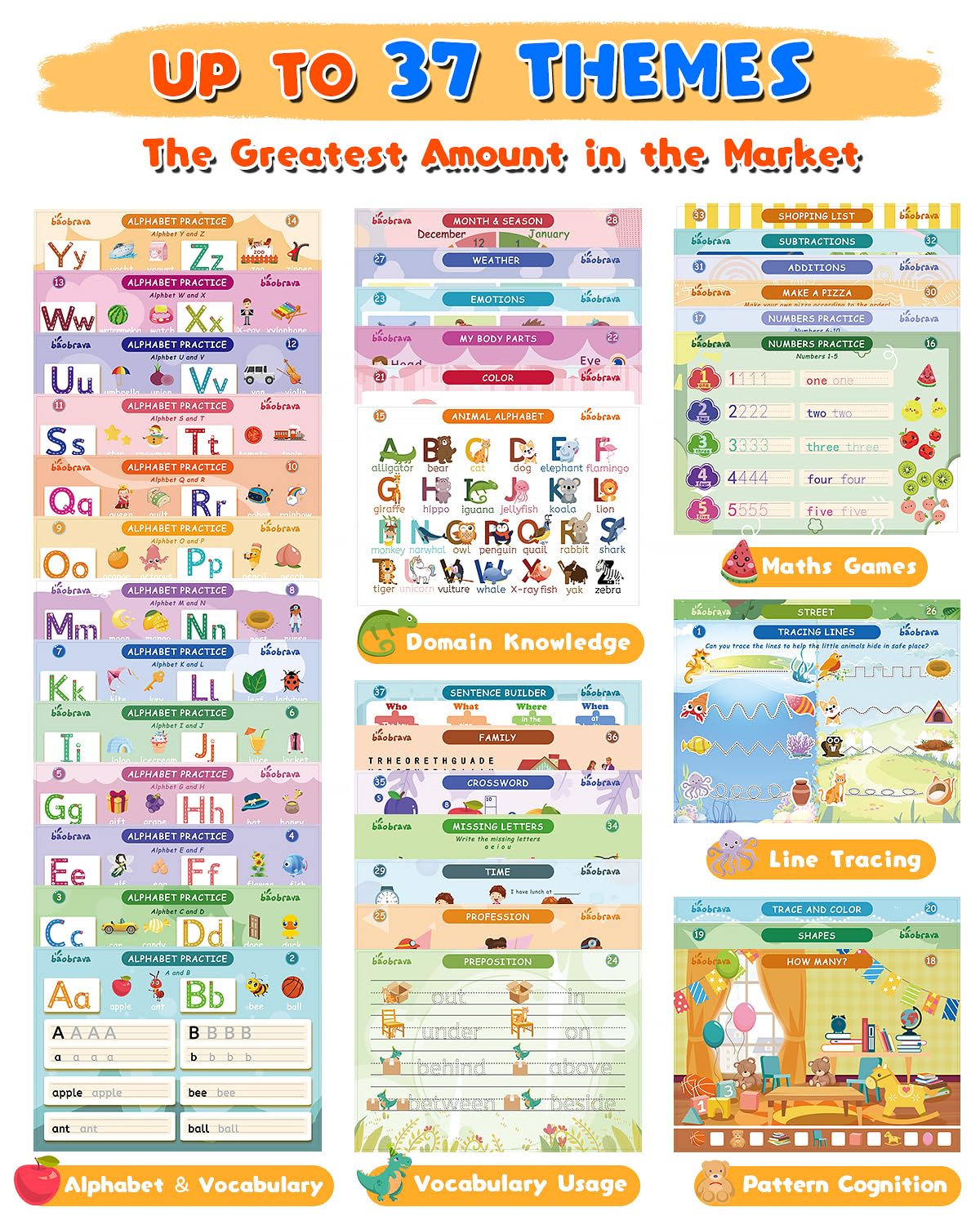 Baobrava Preschool Learning Activities 3-8: 37 Handwriting Practice & Tracing Books for Kids | Travel Games for Car and Airplane | Kindergarten Workbooks | Outdoor Activities Books | Gift for Kids