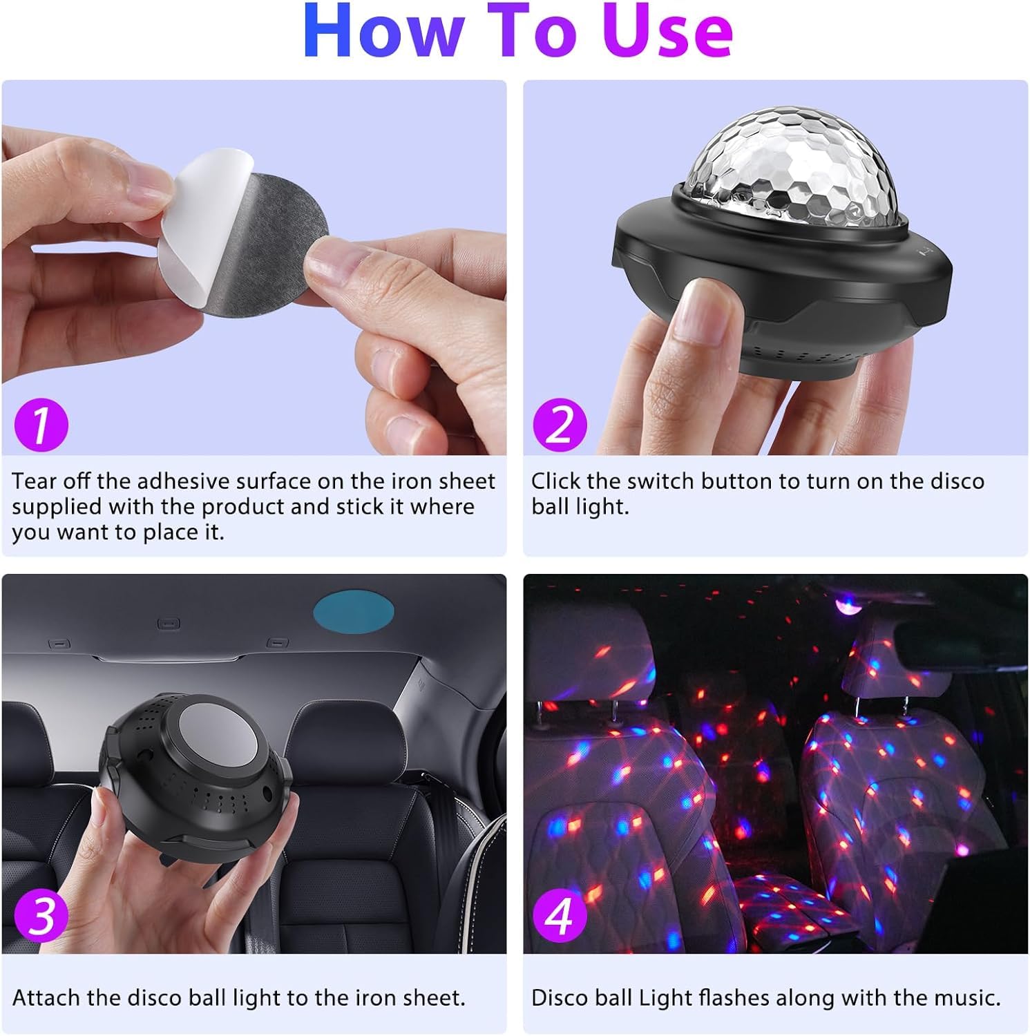 - Versatile Magnetic & Adhesive Mounting: Attach disco ball light with convenience to various surfaces such as walls, stands, tables, and more. The provided magnets and adhesive strips offer many placement options, making it suitable for diverse settings including KTVs, vehicles, bedrooms, and living rooms, adding flexibility and style to your space