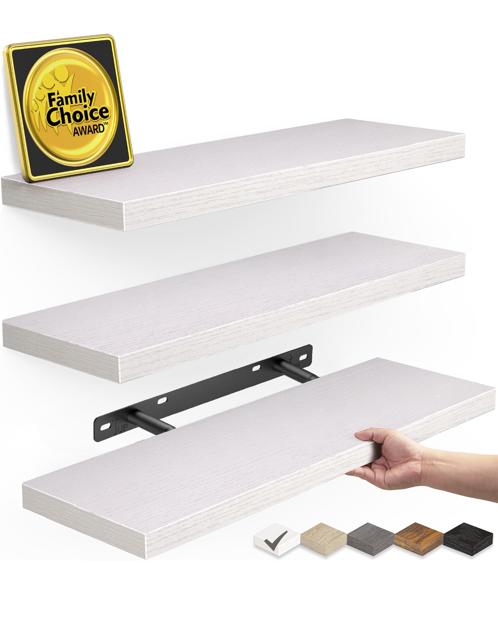 BAYKA Floating Shelves for Wall, Wall Mounted Rustic Wood Shelves for Bathroom, Bedroom, Living Room, Kitchen, Hanging Shelf for Books/Storage/Room Decor with 22lbs Capacity (Black, Set of 3, 15.7in)