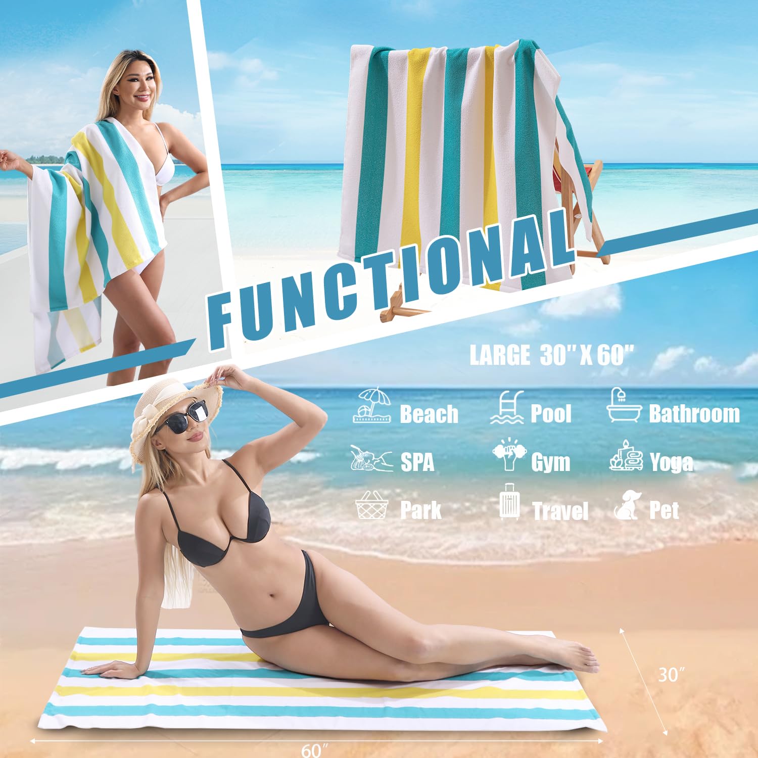 Beach Towel Set-4 Pack 30"x60" Sand Free Stripe Beach Towel for Pool,Bathroom,Soft Absorbent Quick Dry Lightweight Beach Bath Towel,Camping Blanket,Travel Towel,Beach Essentials for Adults,Teal/Yellow