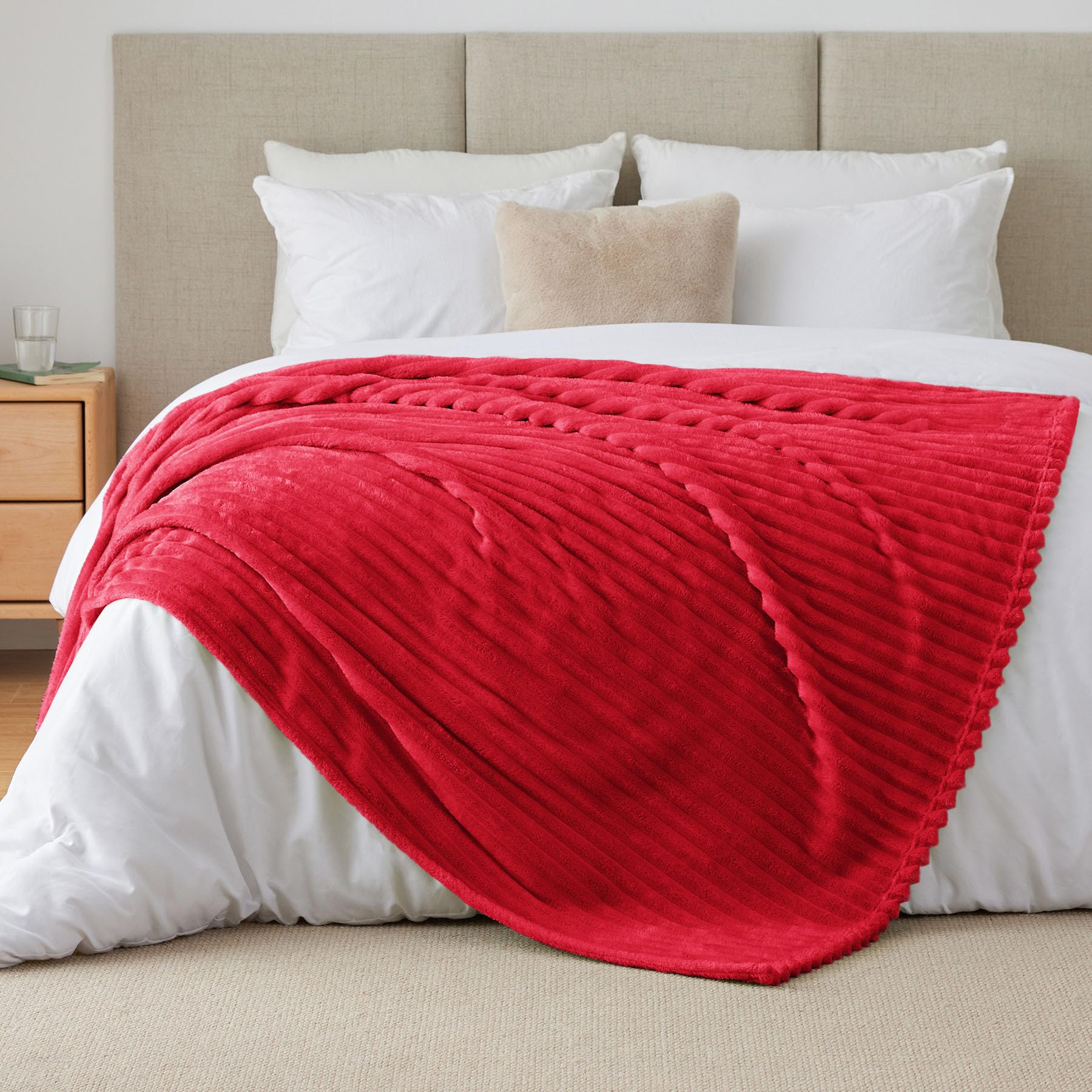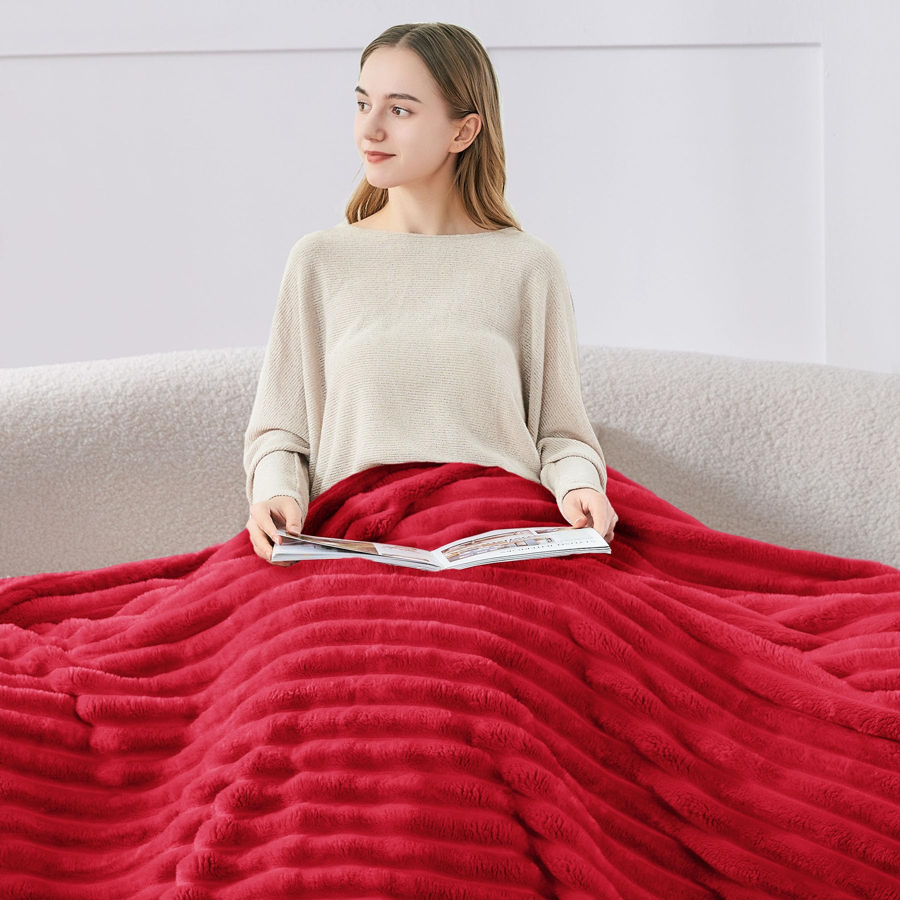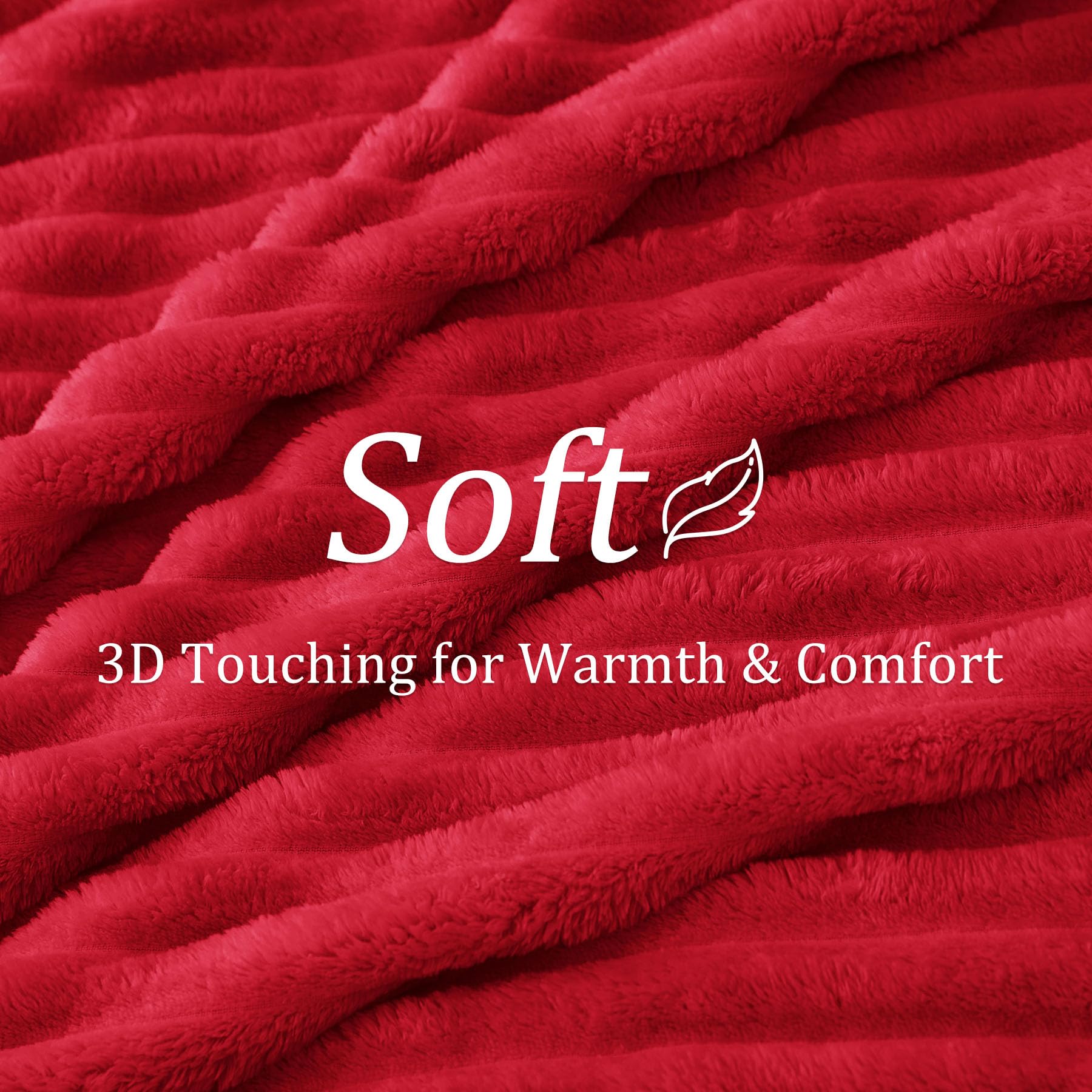 BEDELITE Fleece Throw Blanket for Couch, 300GSM Soft & Warm Fluffy Queen Blanket, Decorative and Giftable Striped Red Blankets for Women, Men, 50"x60"