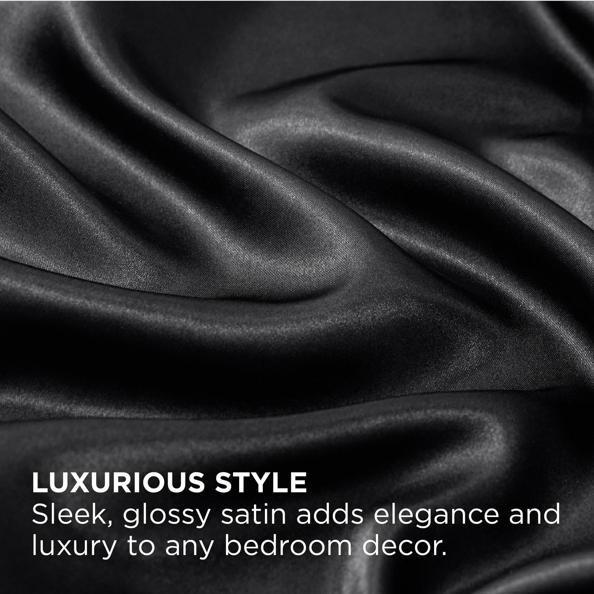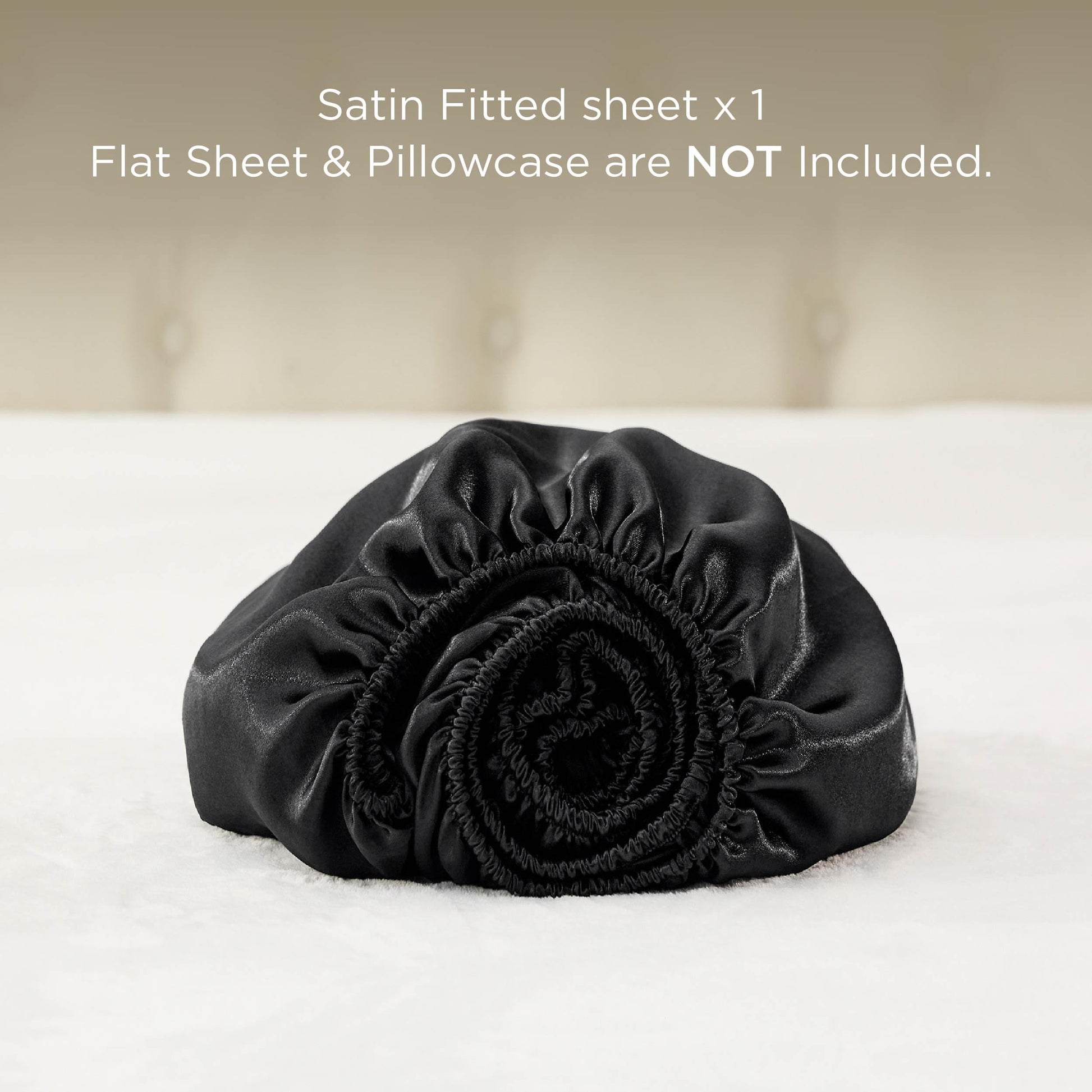 Bedsure Satin Fitted Sheet Only Twin Size - Black Silk Bed Sheet, Luxury & Ultra Soft, Non-Fading & Wrinkle Free, Good for Skin (Black, 39x75+15 Inches, 1 Piece, No Pillowcases)