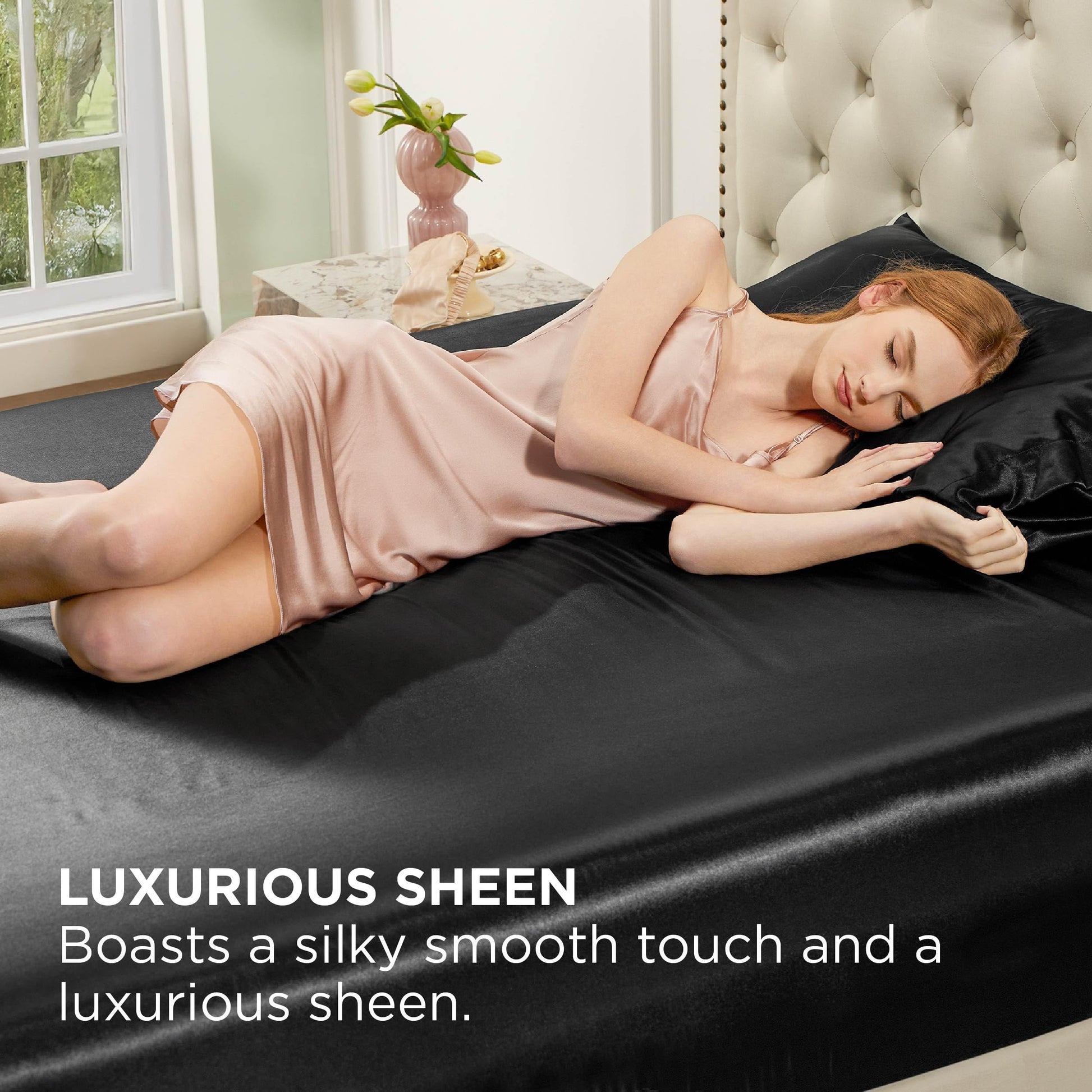 - Silky Soft Texture: Made of premium polyester microfiber, Bedsure satin fitted sheet offers you extreme smoothness and softness. This fitted sheet is also gentle on sensitive skin, offering you restful sleep every night