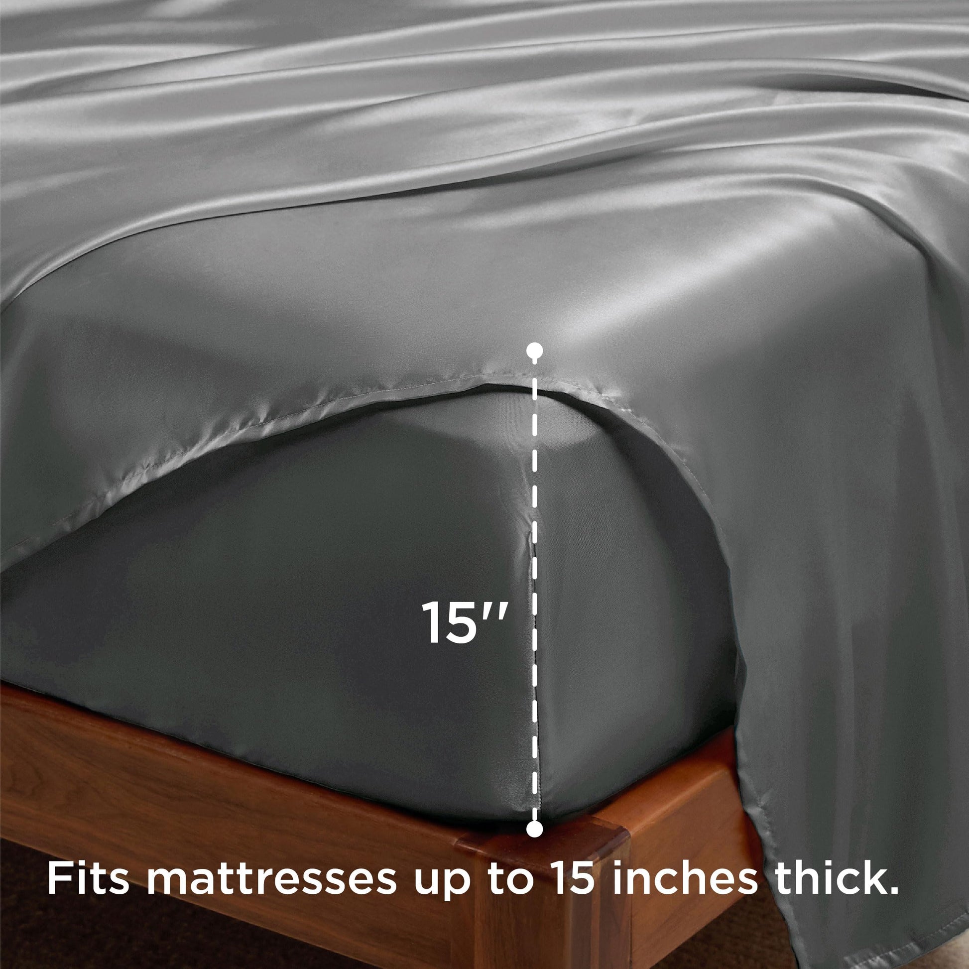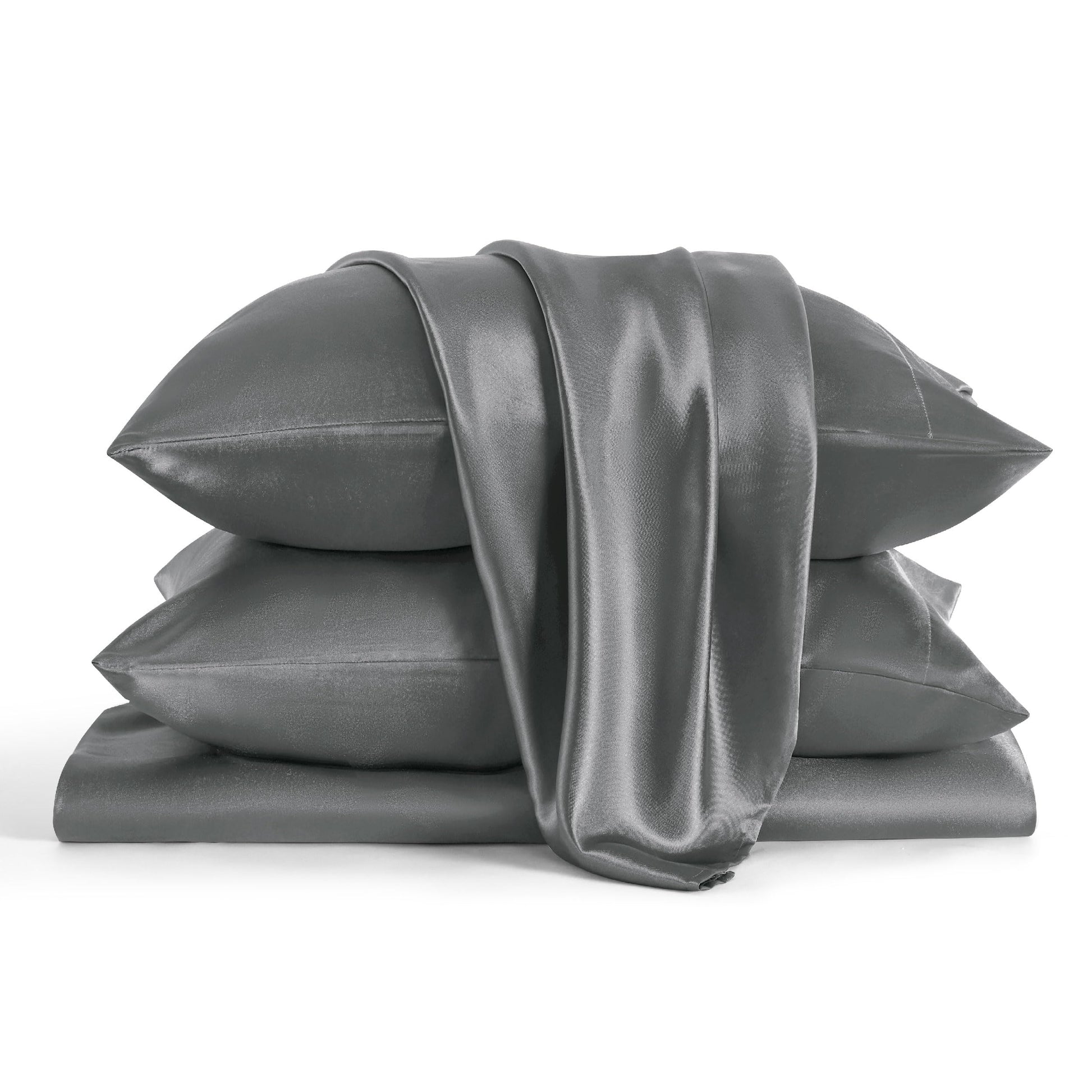 Bedsure Satin Sheets Queen Size - Luxury Silky Bed Sheet Set, Ultra Soft & Wrinkle Free, Good for Hair & Skin, Gifts for Women, 15 Inches Deep Pocket, 4-Piece (Queen, Dark Grey)