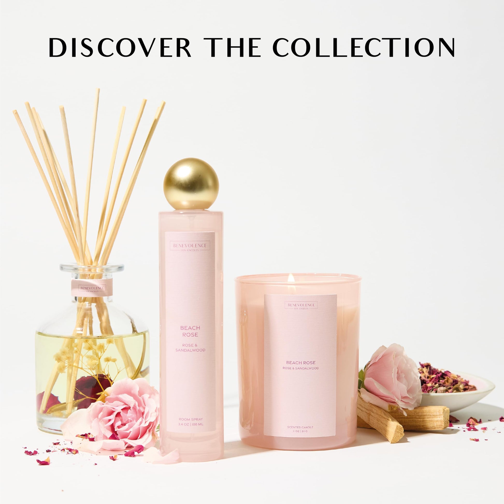 Benevolence LA Reed Diffuser, Rose & Sandalwood Scent Diffusers for Home with Oil Diffuser Sticks | Sun-Kissed Collection