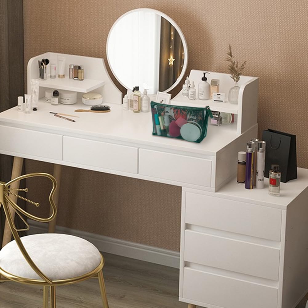 - ๐ ELEGANT GREEN - Emerald green color with synthetic leather hemming tape and pull, make you charming, delicate and dignified when carry the mesh makeup bags
