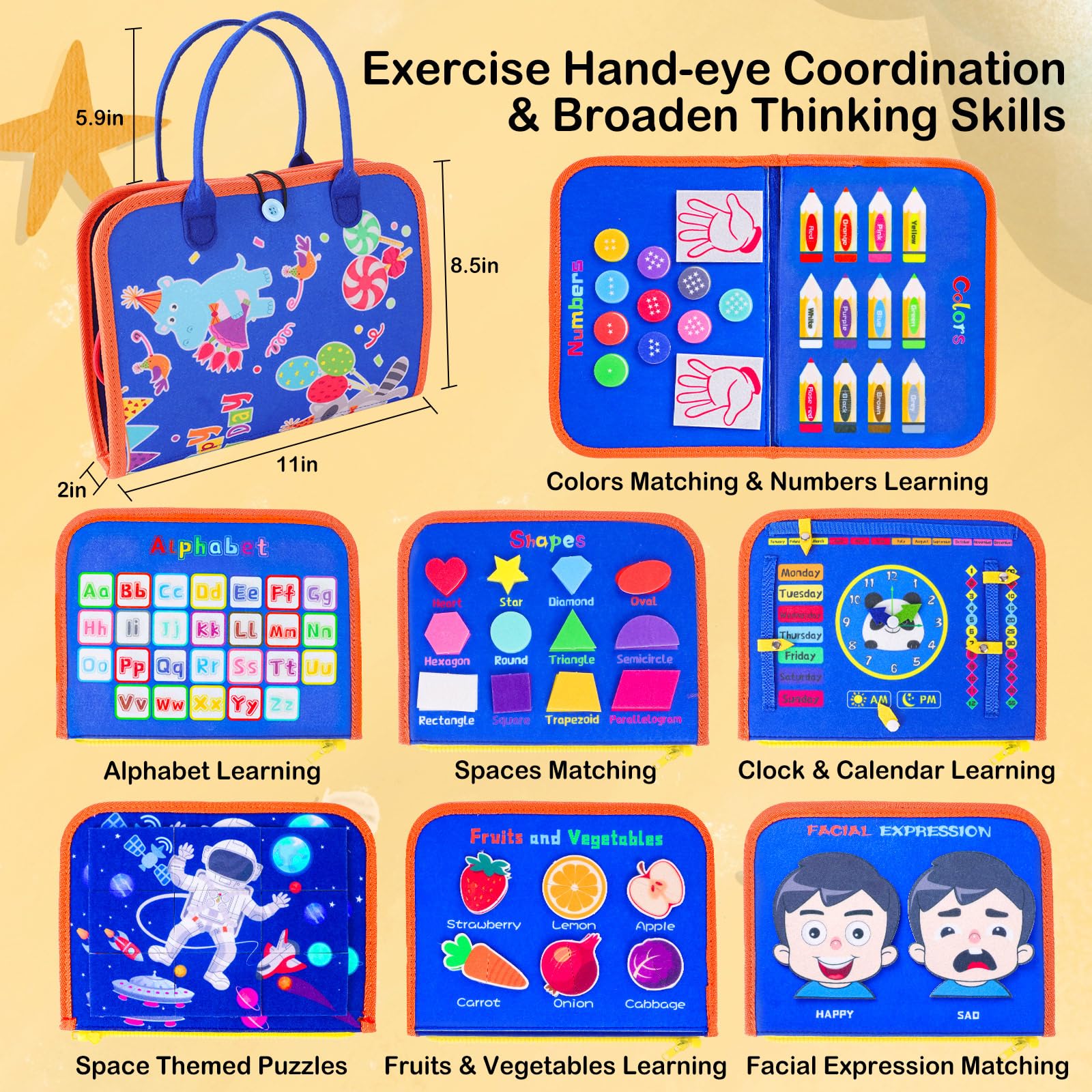 - 【Busy Board For Toddlers 1 2 3 4 】Besnel toddler busy books for toddlers 3-4 contains 12 different pages learning accessories. All these preshchool learning activities can help toddlers learn independently and enhance hand-eye coordination.Toddler busy board also autism sensory board for autistic children.