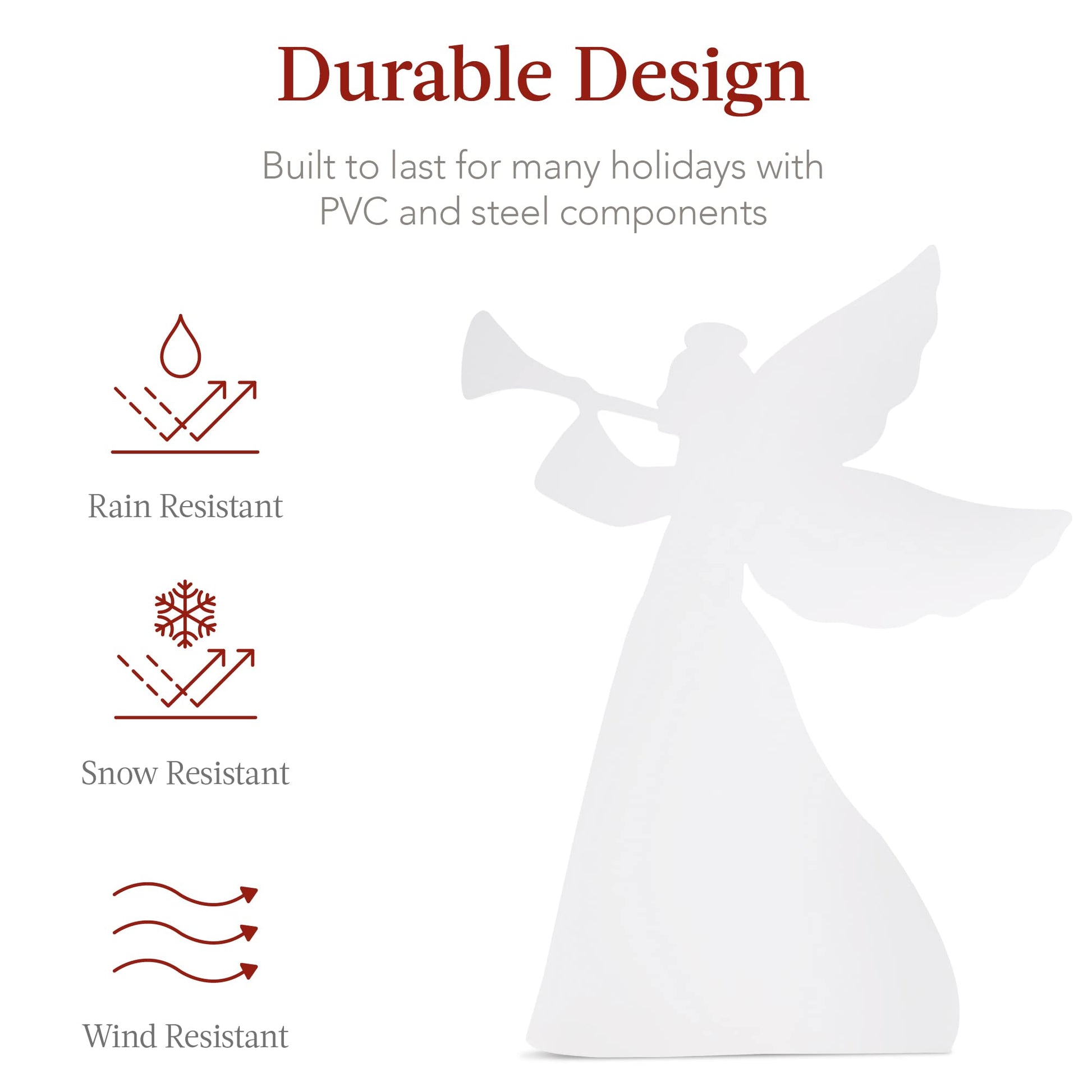 - DURABLE DESIGN: Reliable, water-resistant PVC foam board and included stakes maintain a clean appearance through the holiday season