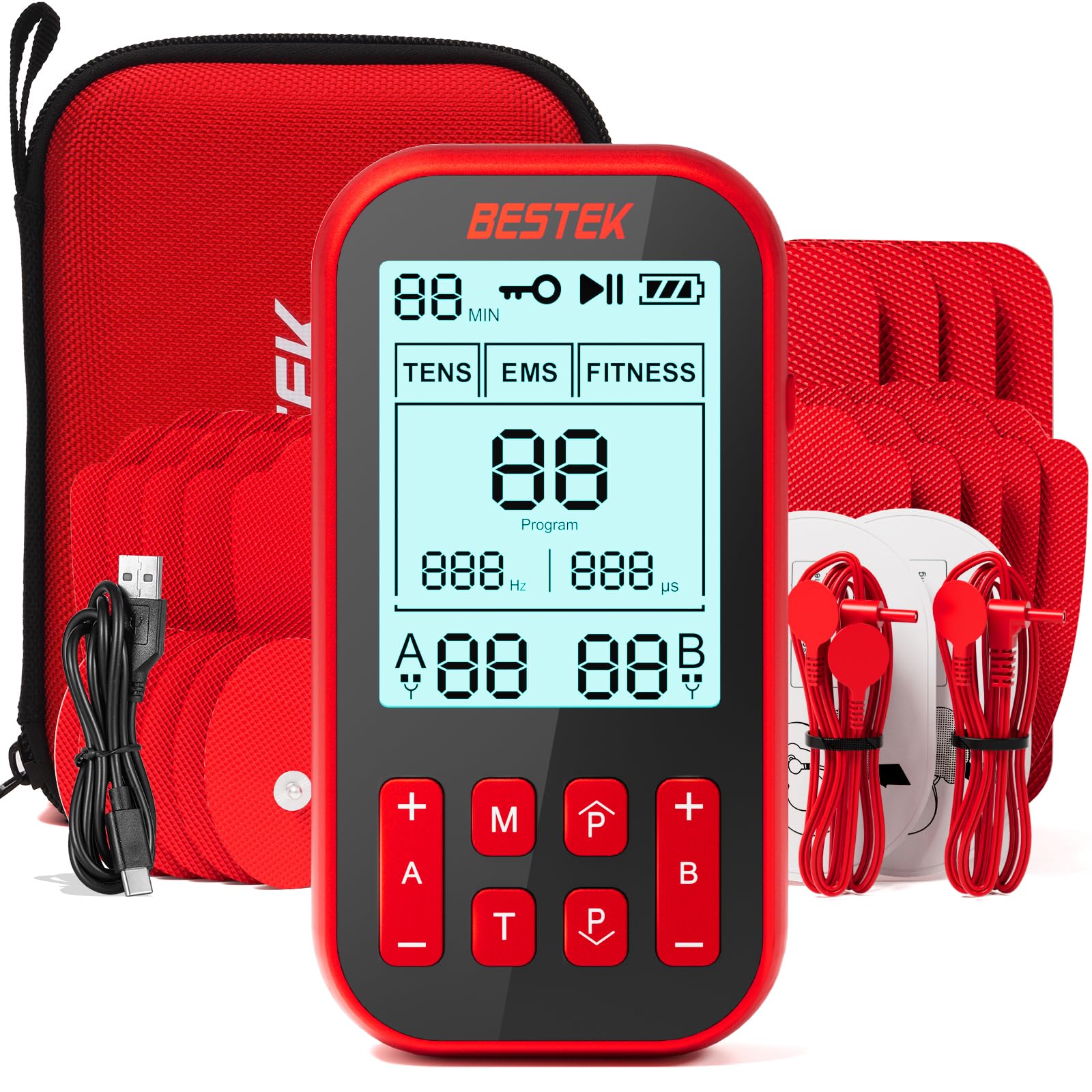- Multifunctional Tens Massager: BESTEK's TENS electric massager features 3 modes (TENS/EMS/FITNESS), 60 programs and 2