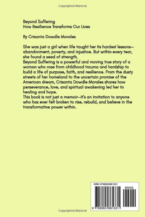 Details: Beyond the Suffering: How Resilience Transforms Our Lives tells the powerful and emotional story of a young girl born into poverty, raised without guidance or protection from her parents, and forced to grow up far too soon. Facing abuse, child labor, and the loss of her right to an education, she carried within her something stronger than circumstance—resilience.