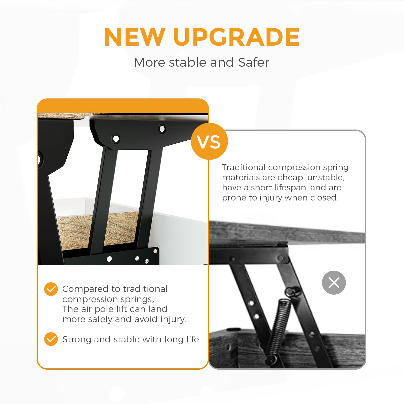 - 【Sturdy and Durable】High-quality metal air support mechanism, superior to traditional compression springs, easy to lift and no noise. Wooden construction and selected materials ensure durability and stability without wobbling or tipping during use.