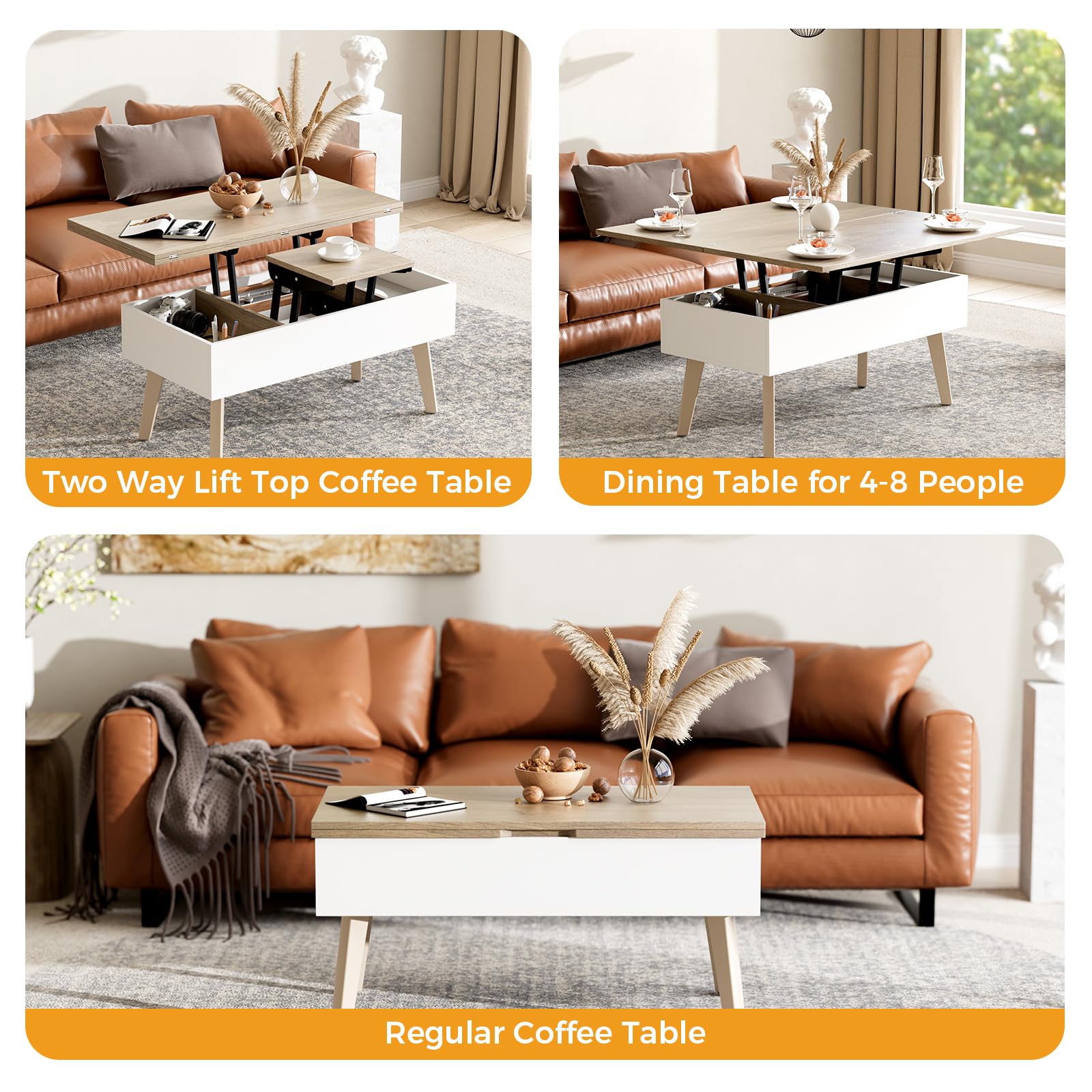 Bidiso 3 in 1 Lift Top Coffee Table, Ten Minutes Install Multifunction Coffee Table, Coffee Table Converts to Dining Table, Lift Top Dining Table Work Desk with Storage,Light Oak